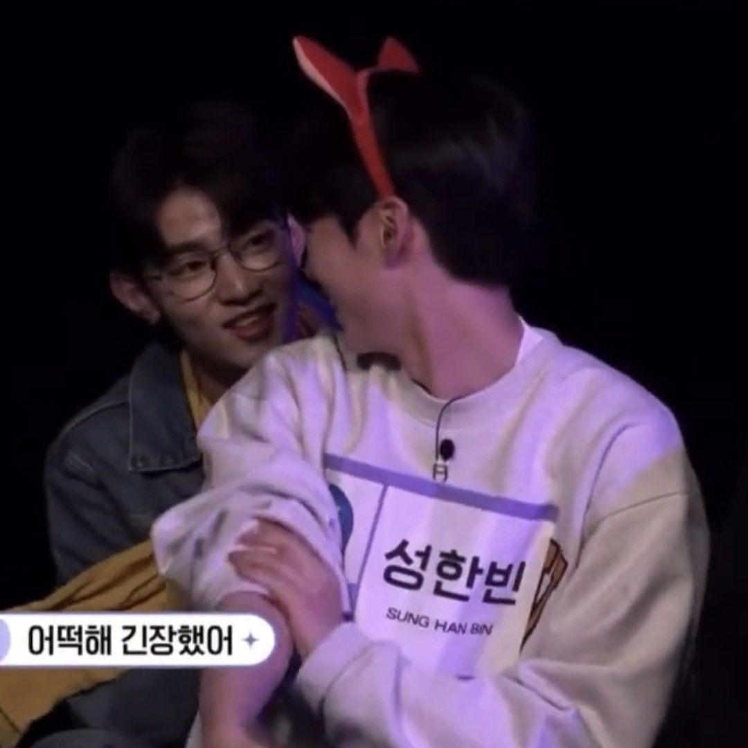 - "Hanbin hyung hôm nay anh đáng yêu thế này còn người yêu nhà anh lại đẹp trai quyến rũ thế kia, anh không sợ anh ấy bị cướp đi sao?"_Seungeon cũng bắt đầu hùa theo Yujin mà chọc ghẹo Hanbin.