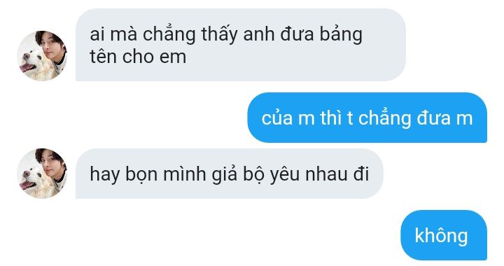 _"nhưng anh hẹn em ra làm gì ó? Chấp nhận giả làm người yêu nhau rồi hả!"