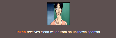 Takao nhận được nước sạch nhờ một nguồn cung cấp không rõ