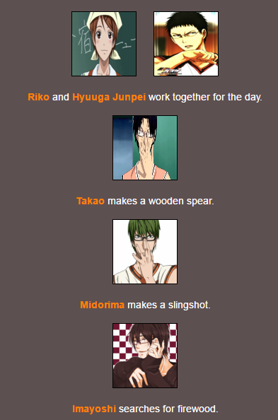 Để cho bạn nào thích đọc nguyên gốc, Ame đã screenshot lại game. Tất nhiên là Ame sẽ dịch lại sang tiếng Việt để mọi người hiểu rồi. Tuy nhiên Ame xin lỗi do khi edit các nhân vật, Ame nghĩ đến ai thì viết luôn người đó vào; bạn nào không thích cùng đội với Mibuchi thì cứ ráng chịu nhé. Ngoài ra, do đây là một phần mềm của nước ngoài nên Ame không thể cho mấy dấu vào nên Ame đã đặt tên reader là First Last name ( [Tên] [Họ] )