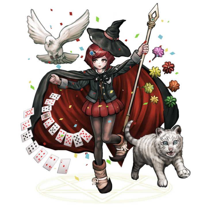 Personality: Regarding her talent, thanks to her master's teachings, Himiko truly considers and believes her parlor tricks to be real magic. This is why she prefers to be called a mage instead of a magician. However, she is only seen doing rather ordinary things like hand techniques and making doves appear. She gets annoyed if people tell her magic isn't real, causing her to repeat that it is over and over again. During various situations, she tends to claim that she could use her magic to fix the problem, but she says she doesn't have enough MP. She also tends to take the credit in multiple situations, claiming it all happened thanks to her magic. While all of this can make her appear self-centered, she has actually explained that one of the biggest reasons why she likes being a "mage" is to make her audience happy and smile, especially children.
