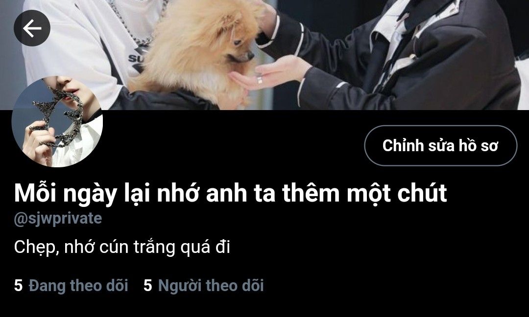 Cũng chỉ follow 5 người trong nhóm không có Hwarang. Thật ra là trước có follow Hwarang và được Hwarang follow (bằng acc chính) nhưng vừa mới block acc thằng chả rồi