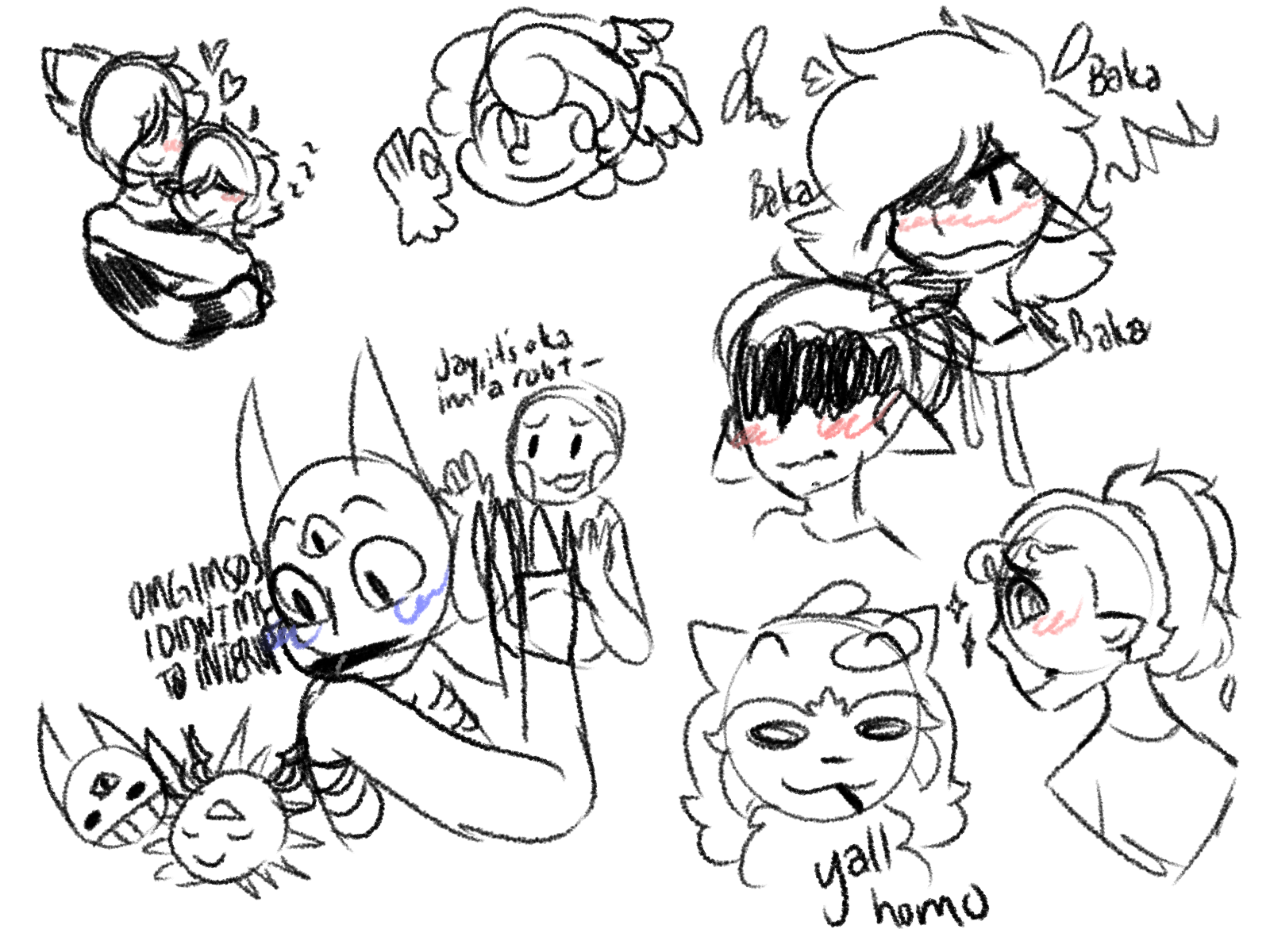 Just some little doodles of them being cute and silly! Just to better build their relationship and help with their dynamics! I definitely adore many of these little doodles, I even love the idea of them getting so comfortable with one another that they can be vulnerable.