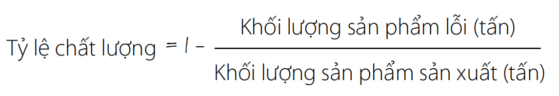3. Tỷ lệ chất lượng: Tỷ lệ này phản ánh các mất mát liên quan đến các lỗi không thể sửa chữa và công việc tái chế biến từ tổng khối lượng sản xuất các bộ phận.