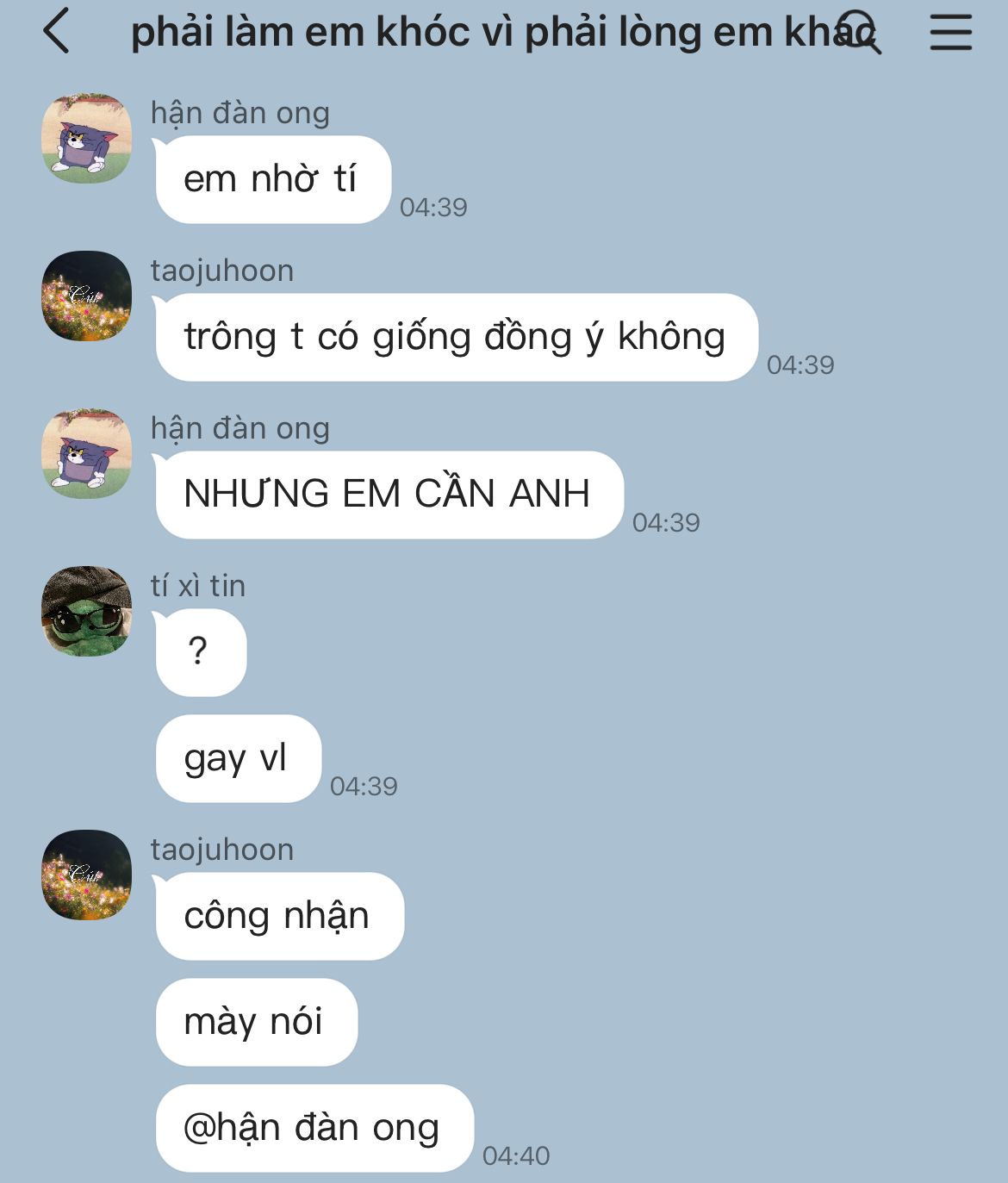 nó chúa ghét mấy cuộc tranh luận mà không có hồi kết hay giải pháp, như bánh mì mà không có tí trứng với pate ấy. còn seonghyeon thì ngược lại, cậu ấy ghét mấy trò cãi nhau, kể cả ôm bực vào người thì người yêu nó cũng không muốn lời ra tiếng vào cho xong chuyện.