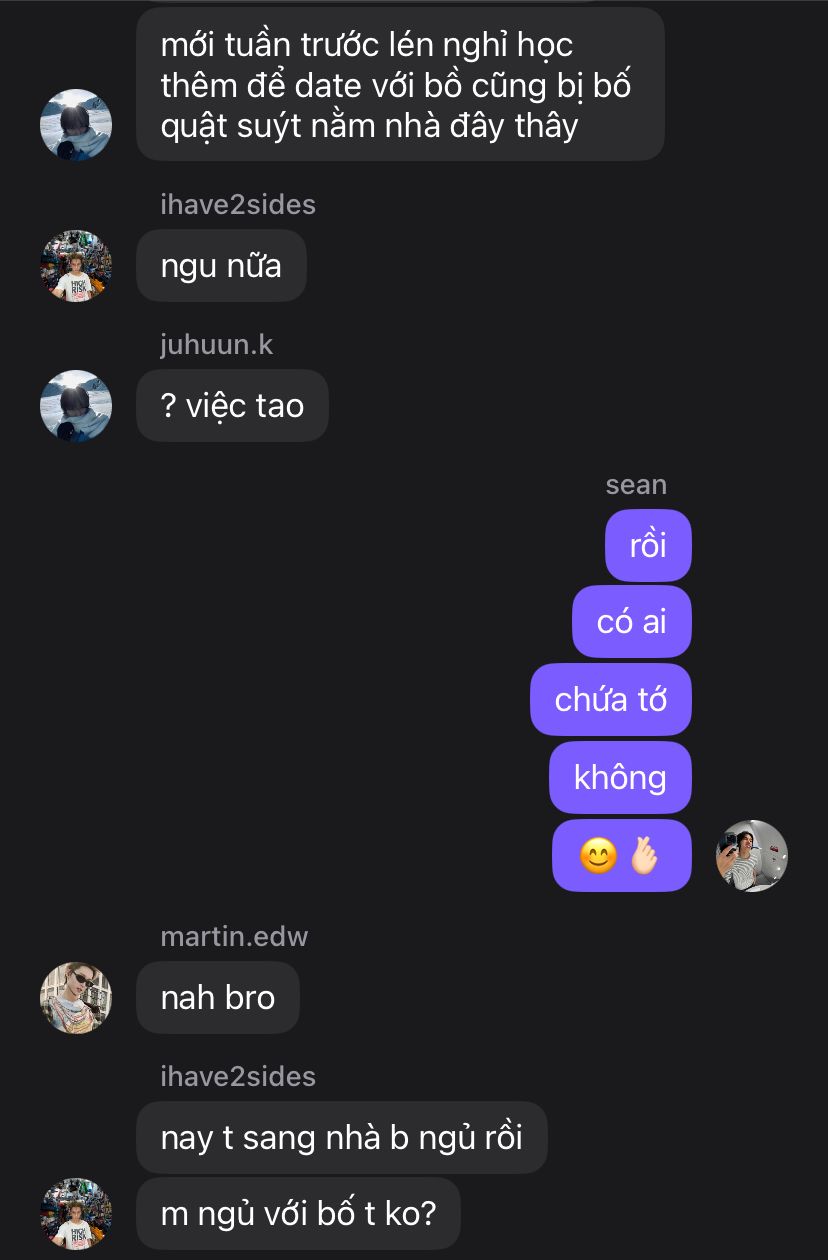 seonghyeon mặt như song song với trời, đắc ý nhắm mắt, nói xong còn hơi liếc mắt xuống mặt cậu. thật ra nó cũng không tính rêu rao tin này với ai, nhưng để trả thù tên này thì doạ chút chắc cũng chả sao. mà hơn hết, nó thật ra vẫn có một mong muốn từ keonho.
