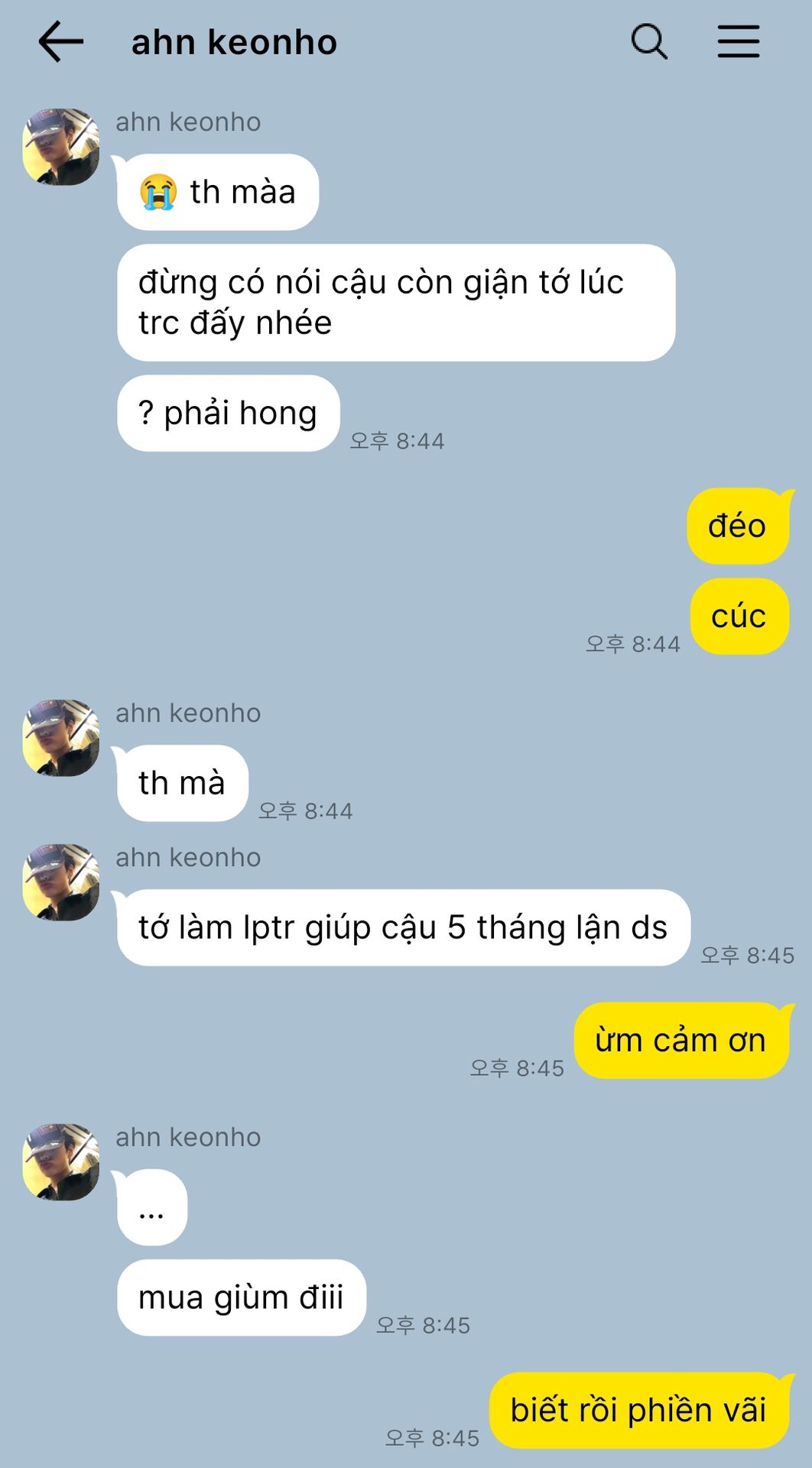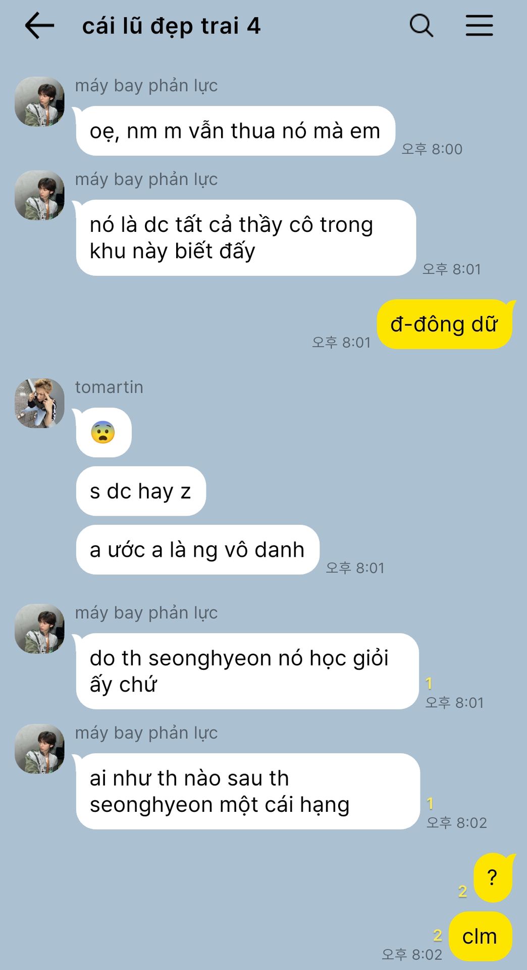 vì học nãy giờ hơi khác nước, bấm điện thoại một hồi thì ra chơi mẹ luôn, chưa chép bài con mợ gì hết, với một niềm tin nào đó, seonghyeon đã nghĩ rằng keonho đã chép bài đầy đủ do hiện đang vẫn còn là lớp trưởng thay thế.
