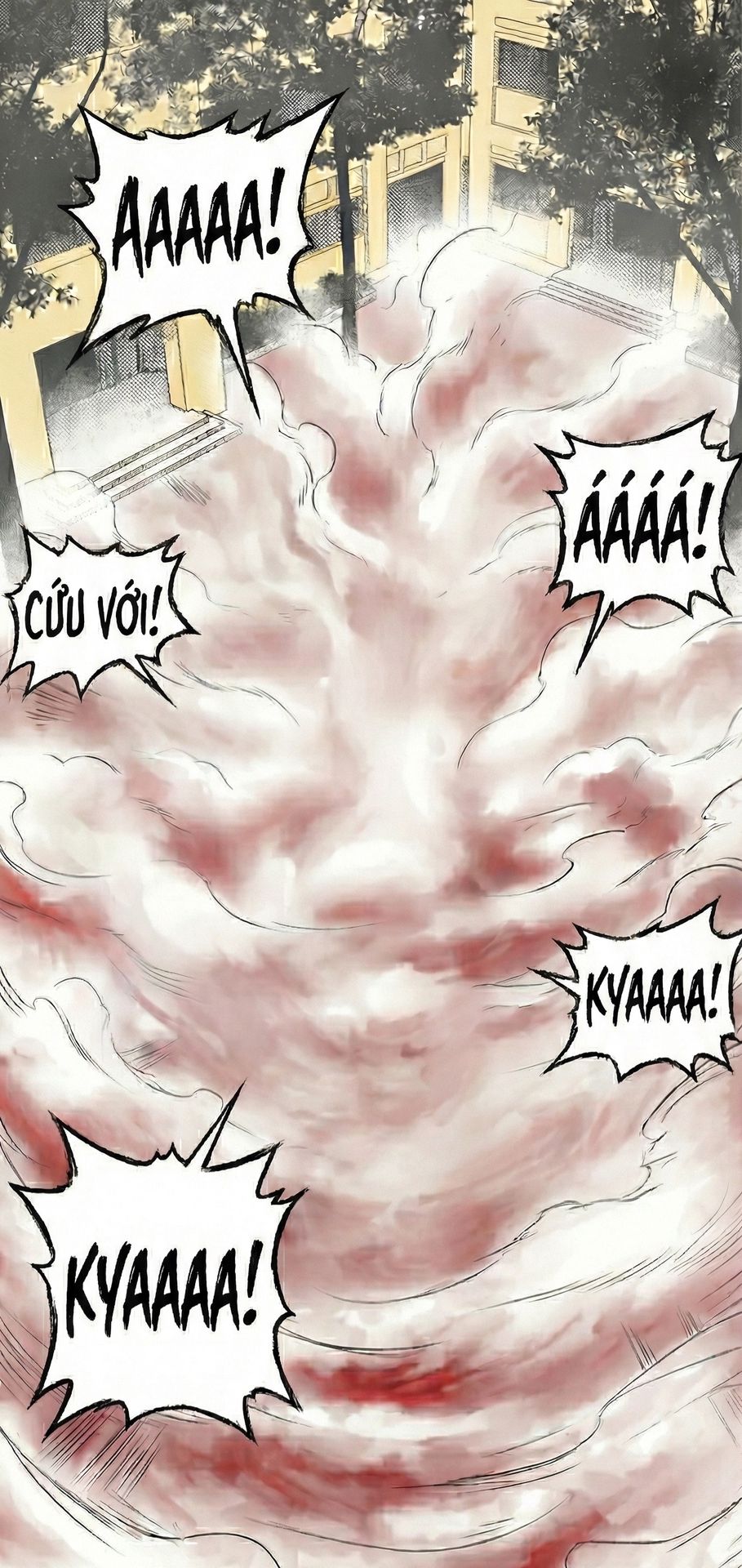 Một làn sương trắng sữa mờ ảo, lạnh lẽo, bỗng chốc trào lên bao phủ toàn bộ sân trường. Tiếng la hét thất thanh, hoảng loạn của các học sinh vang vọng rồi bị nuốt chửng.
