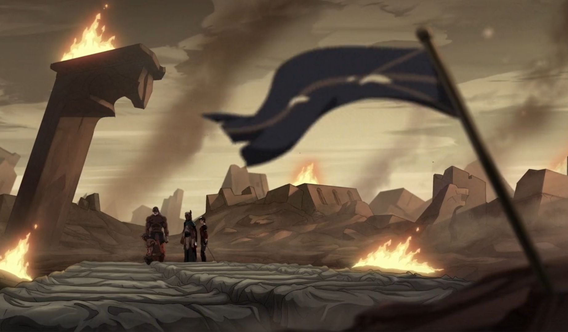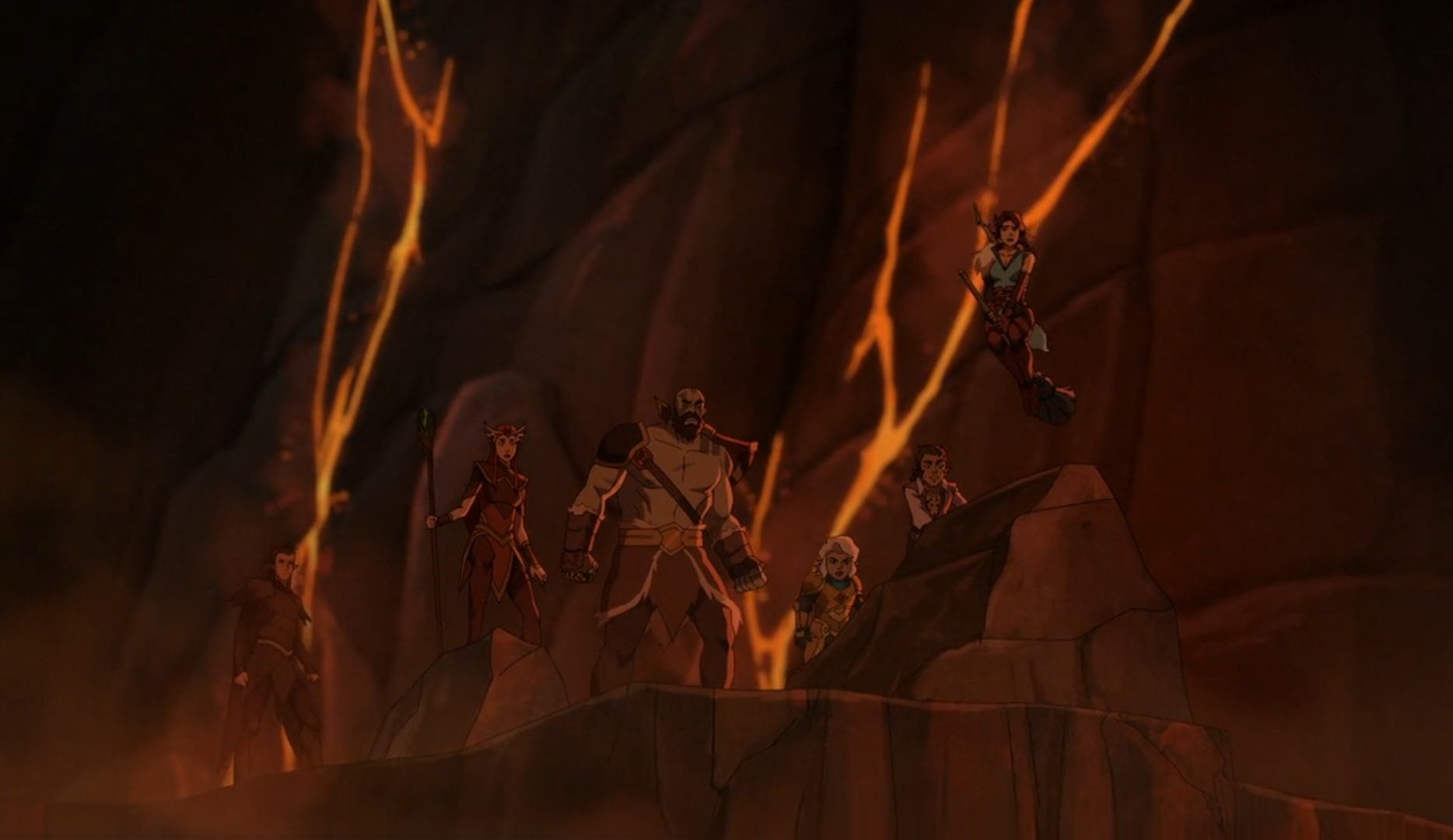 When they gathered their army to fight against the Cinder King and his children, they form a plan by the army will be focusing on the battle while Vox Machina deals with the hatchlings and Thordak with their vestige. Thankfully Raishan knows a secret passage that's small enough for people to enter. Right now, Vox machina are flying to the layer while the army goes on foot to face the hatchlings. Avoiding the hatchling guards to head to the secret entrance.