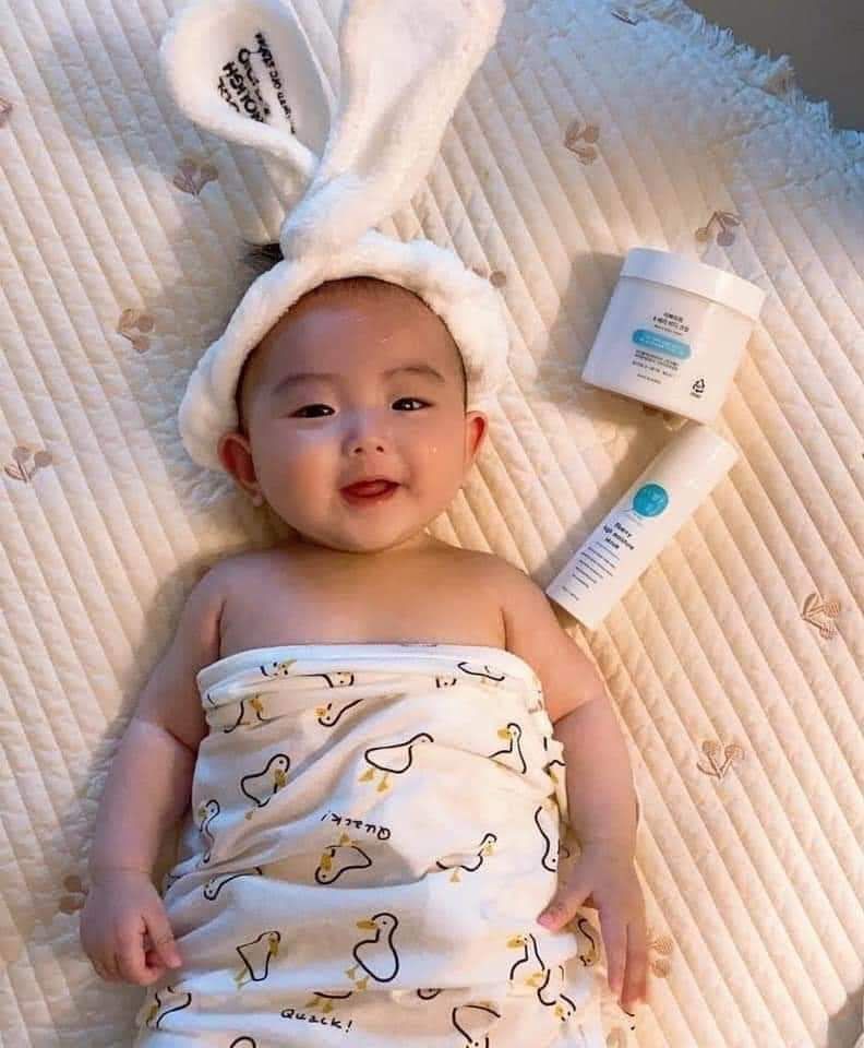 - Mặc kệ chứ, em đang bận mặc quần áo cho tiểu Soo. Công chúa vừa tắm xong thật là thơm mà.