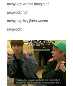 "Oh come on, your sleeping here in the same bed as me. We're mates so its fine Jungkook-ah!" Taehyung said pulling the other by his arm "And I know you won't do anything. without me knowing"