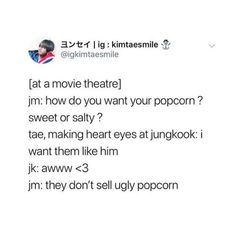 "Nahh its looks perfect" Taehyung said and gave him a sweet smile which immediately calmed the other's nerves.