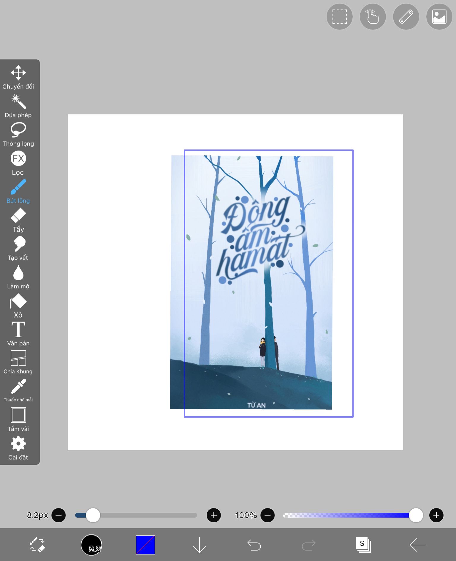 Bước 3: Quăng cái bìa mà bạn đã làm hồi nãy vào đây. Phóng to lên.