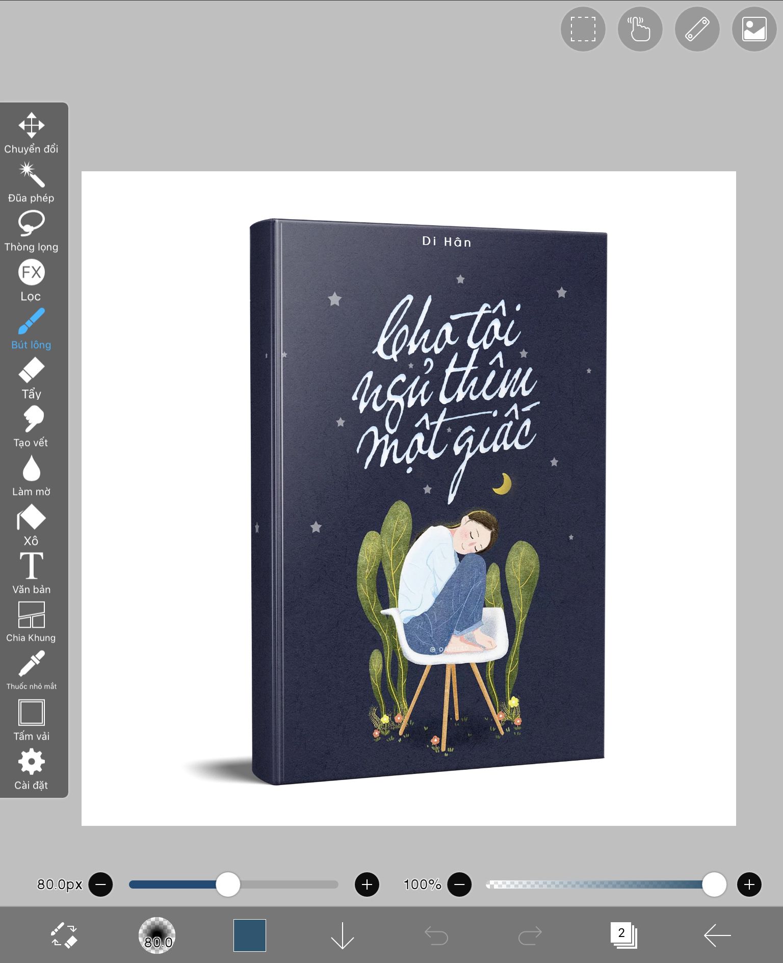 Bước 4: Kéo cái bìa đó ra cho khớp với cái mockup đằng sau.