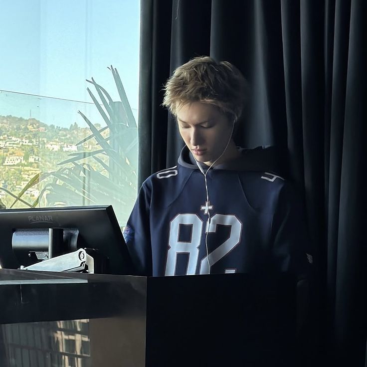 Ánh mắt cậu sáng lên giữa căn phòng thu mờ ánh đèn.