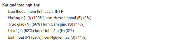 Trắc Nghiệm MBTI, trắc nghiệm tính cách, trắc nghiệm chọn nghề nghiệp, trắc nghiệm bản thân (tracnghiemmbti.com)
