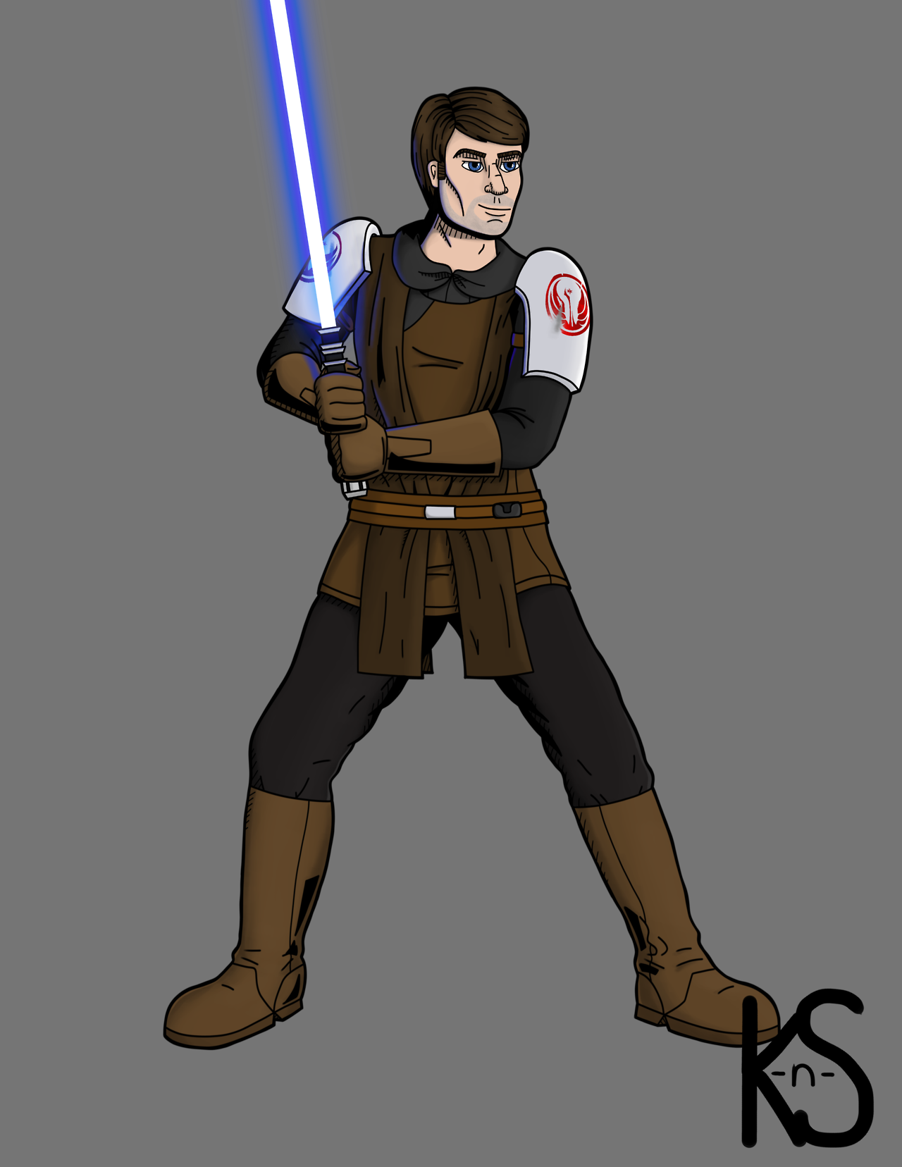 his amour ( some time he wear his mando amour some times he just wear his jedi robs)