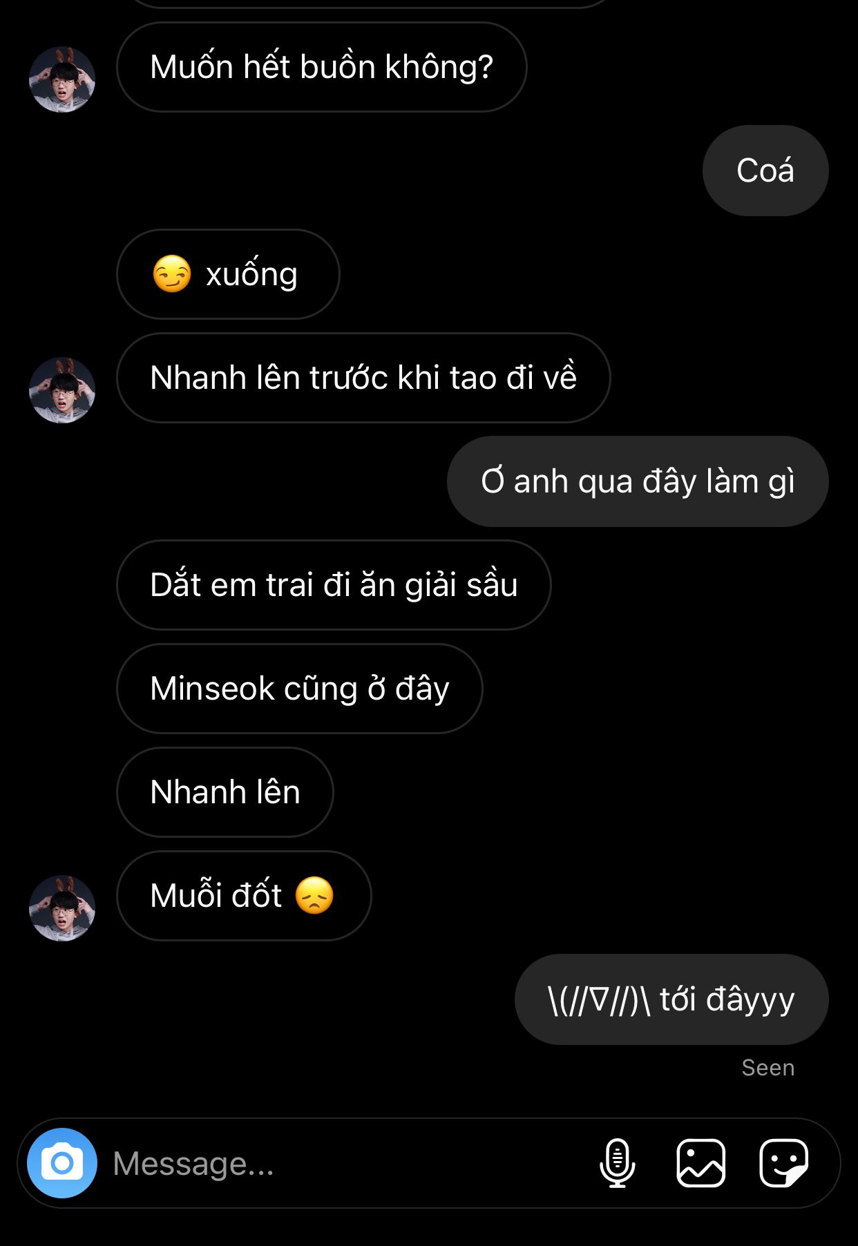 Wooje trở về phòng với ly hot choco còn nguyên, anh Do-hyeon đã giữ đúng lời hứa sẽ không đớp của nó miếng nào vì cái vỏ ống hút còn nguyên. Khi em trở về cốc hot choco này vẫn còn ấm, hẳn anh Wangho đã làm nóng nó trước khi em về. Người ta thường đồn anh Đậu rất hay tịch thu đồ ăn vặt nhưng có lẽ hôm nay sẽ có một ngoại lệ. Wooje mệt mỏi dựa vào ghế, vị ngọt của hot choco từ đầu lưỡi tràn xuống cổ họng. Choco rất ngọt nhưng nước mắt của em chảy không ngừng, cơ thể em run rẩy với những tiếng nấc. Wooje biết rời đi sẽ có những vấn đề gì và rời đi một cách không êm đẹp thế này sẽ khiến con đường về nhà của em trở nên bế tắc. Có lẽ trong khoảnh khắc nào đó em đã tin Moon Hyeonjoon có thể quên em đi. Nhưng ly hot choco ở đây đã nói rõ rằng Moon Hyeonjoon vẫn sẽ coi em là em trai nhỏ kể cả khi em có cắm vào trái tim anh hàng ngàn vết dao.