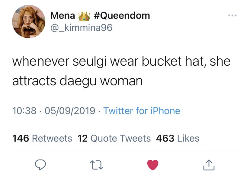 Bất cứ khi nào Seulgi đội nón Bucket, cô ấy thu hút được người phụ nữ Daegu.