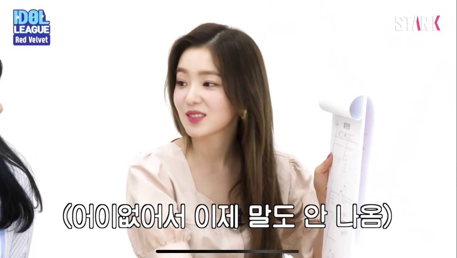 04/07/2019, khi tham gia Idol League, các thành viên phải làm bài quiz của nhau. Yeri làm phần quiz của chị thì gặp câu hỏi:"Màu sắc yêu thích thứ nhì của Irene là gì?". Con bé mới nói giỡn là màu Cầu vồng 🌈🥲