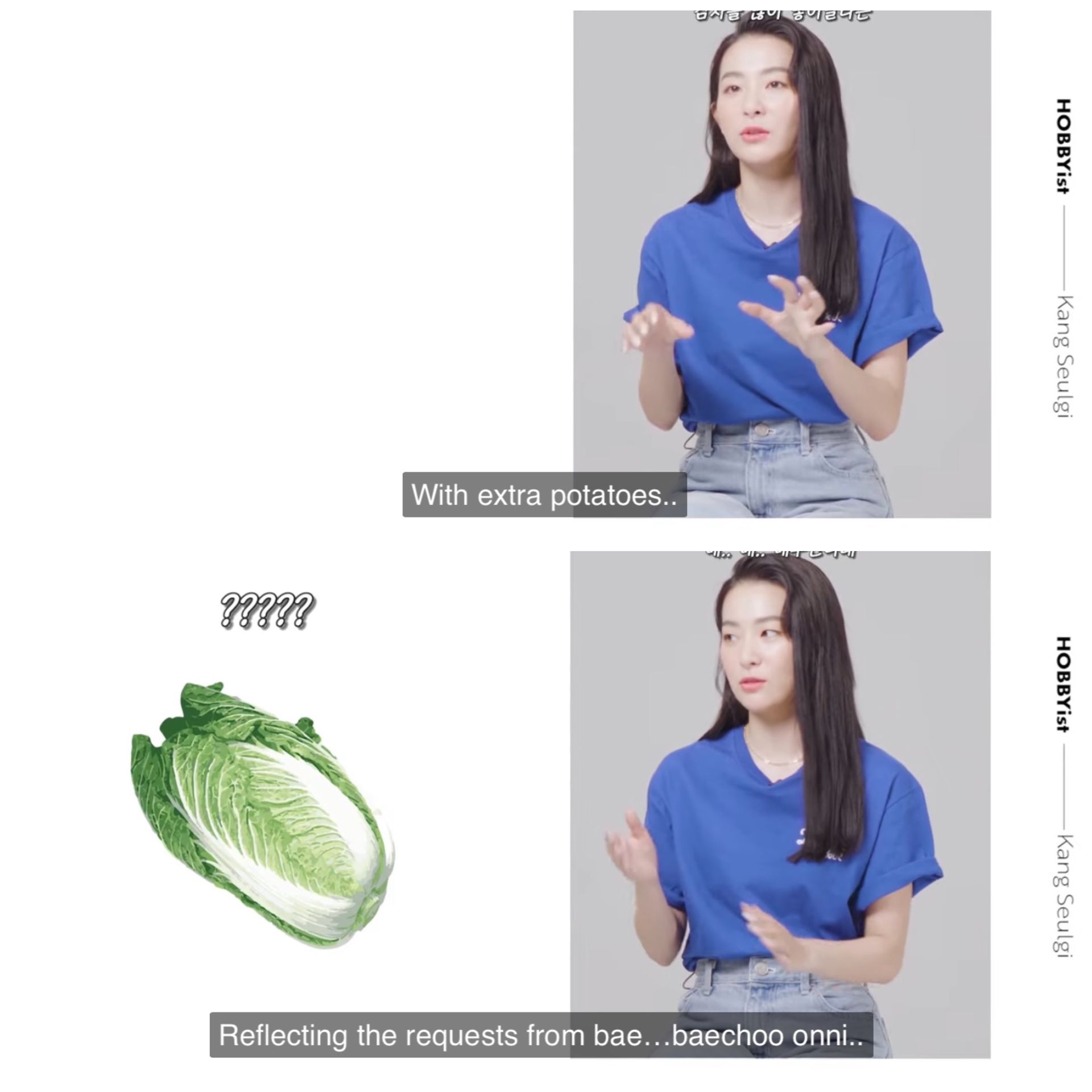 Mọi chuyện bắt đầu từ Eye Contact Cam S2 2018 của Seulgi khi S quay lại quá trình nấu Sujebi của mình.