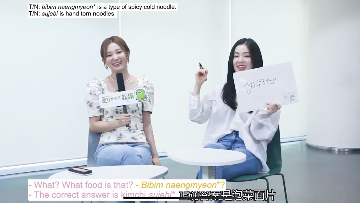 "Có một nhà hàng sujebi ở samcheongdeong ngon lắm. Mình đã cùng với Seulgi đến đó".