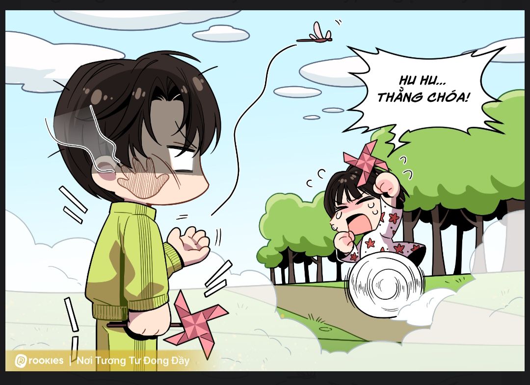 "Váy hoa" giật mình, em nhìn về nơi âm thanh phát ra thì thấy có một cậu nhóc chắc trạc tuổi em, mặc đồ thể thao màu xanh nõn chuối, mặt mũi cực kỳ khó chịu.