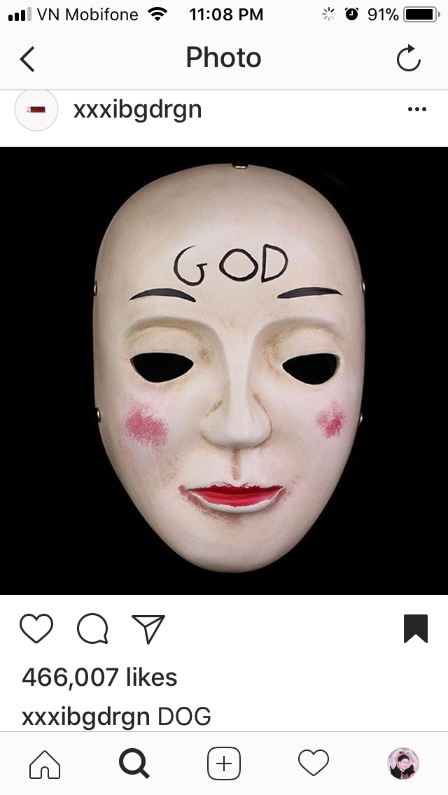 Trong hình là 1 chiếc mặt nạ có chữ GOD trên trán, nhưng caption cho tấm ảnh lại là DOG?!