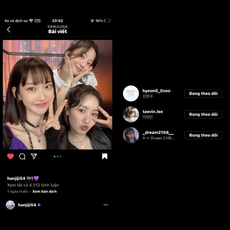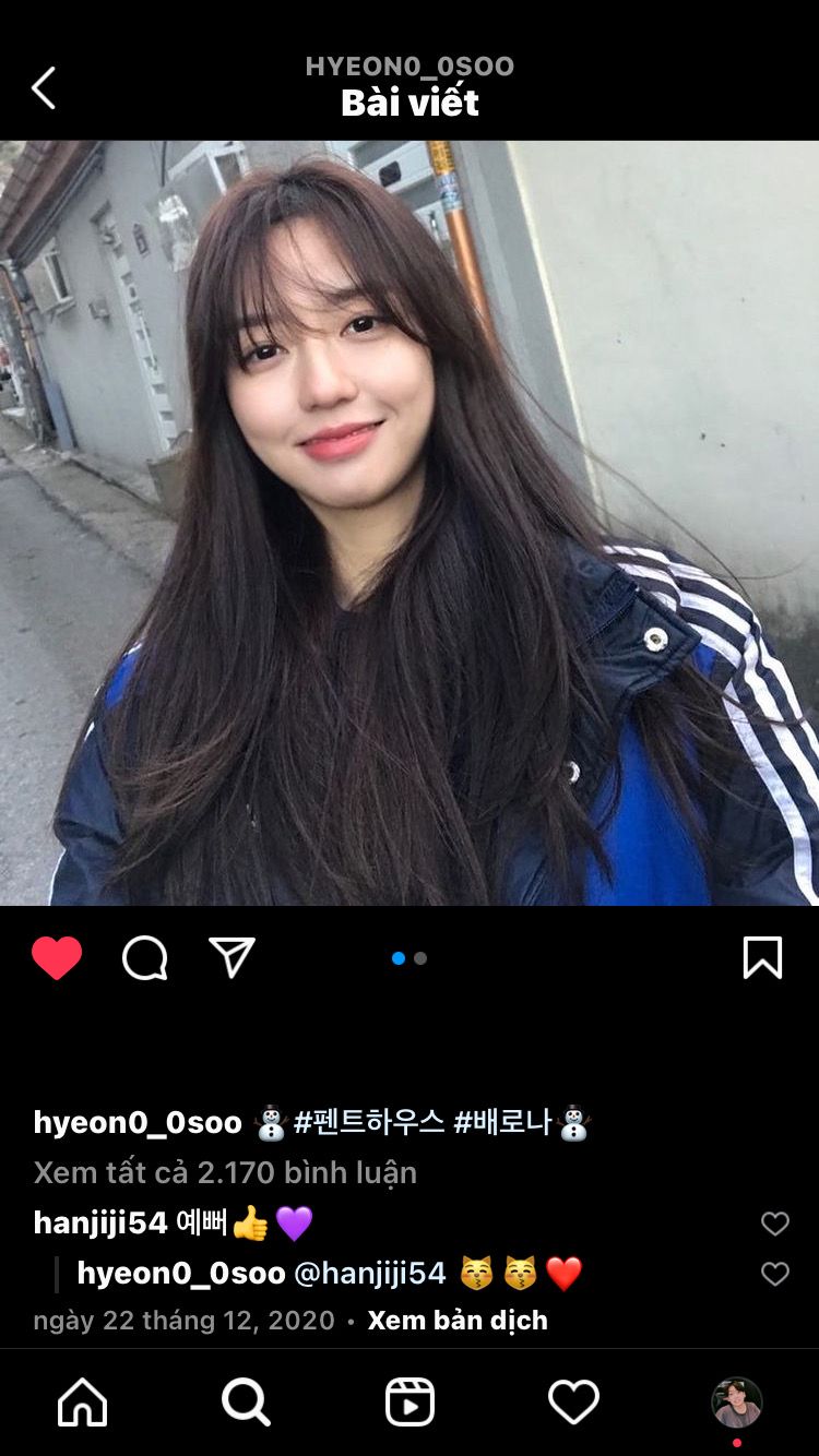 [JiHyun đã comment khen HyeonSoo và dùng "💜"]