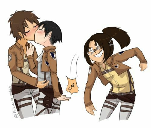 Hanji:*Vỗ vai Erwin*Thả ỏng đi nào!!!Cười lên đi!!!