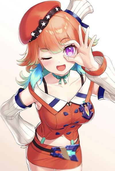 Khi nghe thấy vậy cô gái ấy liền tạo dáng nắm mắt phải và dùng 2 ngón tay tạo hình tròn để quanh mắt trái và cười, nhìn rất tinh nghịch như Gyaru,