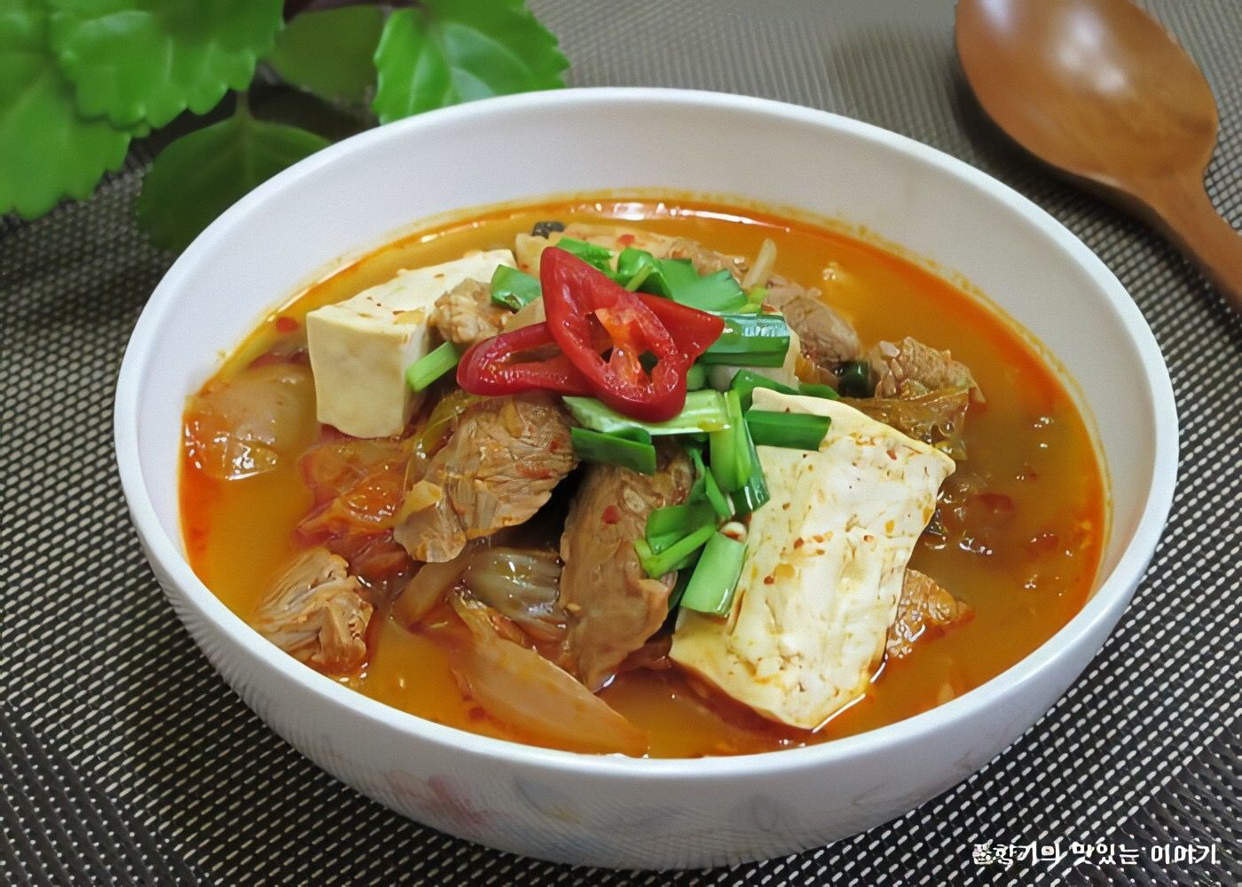 *Canh kim chi: là món canh hầm được nấu từ kimchi cùng một số nguyên liệu khác như hành lá, hành tây, đậu phụ, nấm, thịt lợn, hải sản...