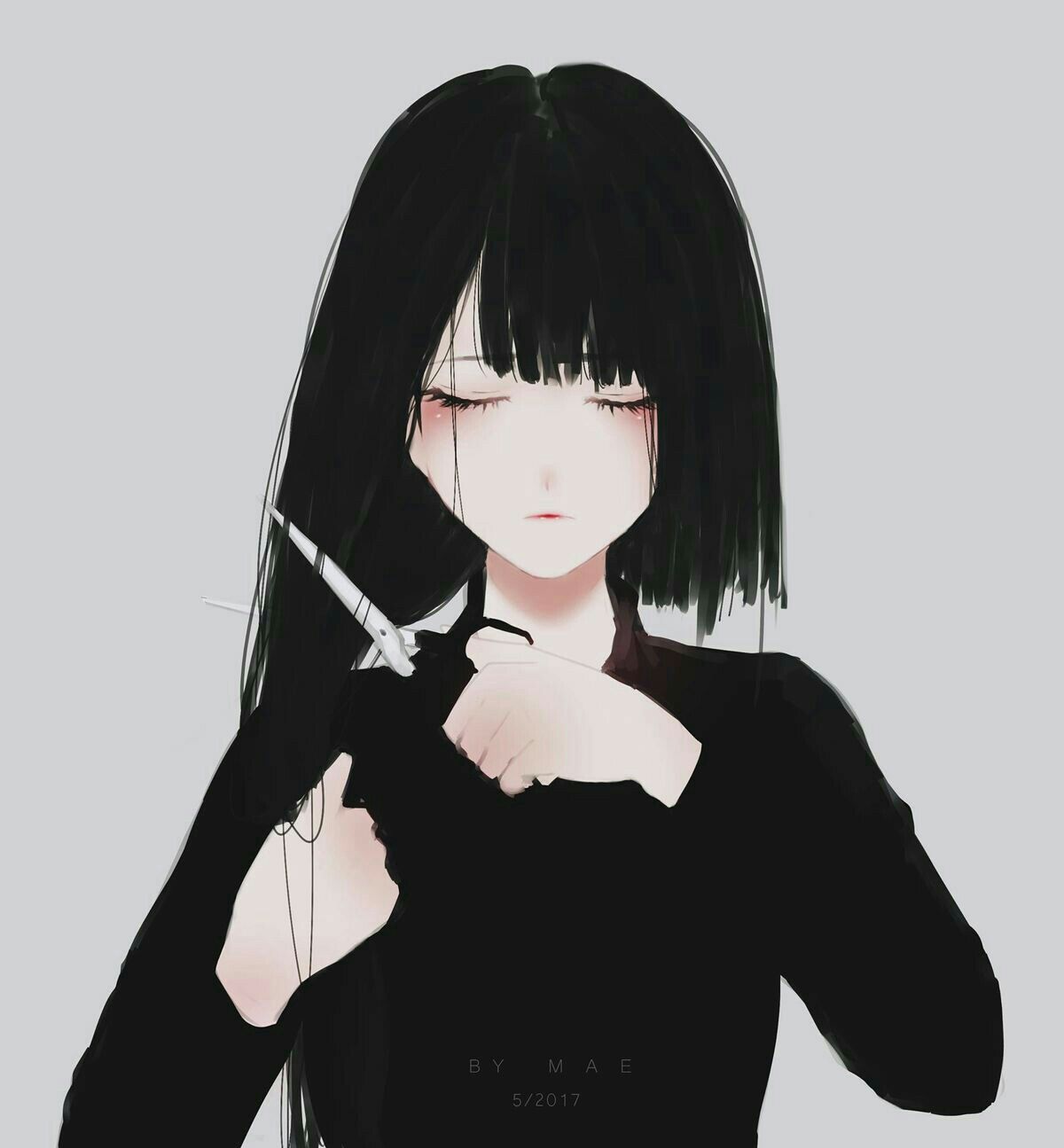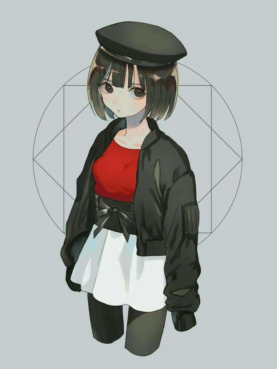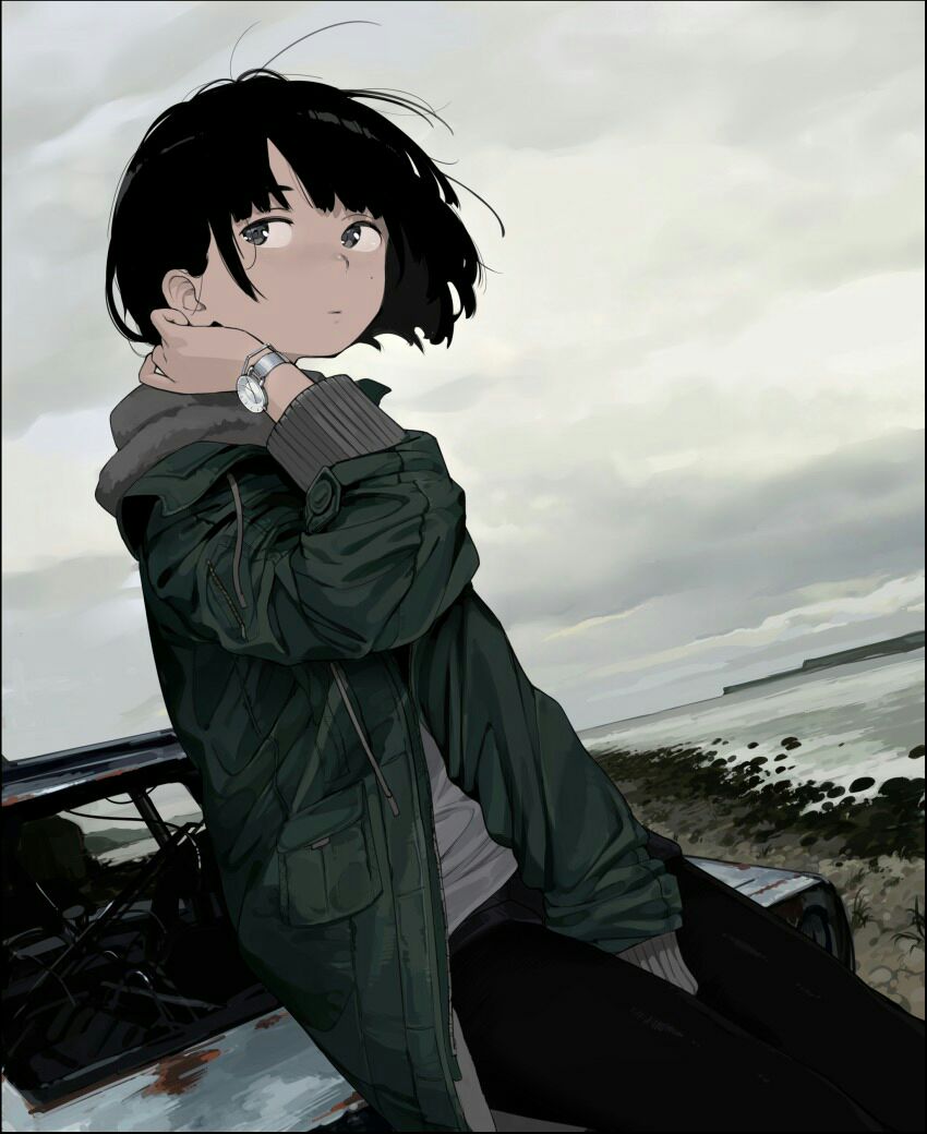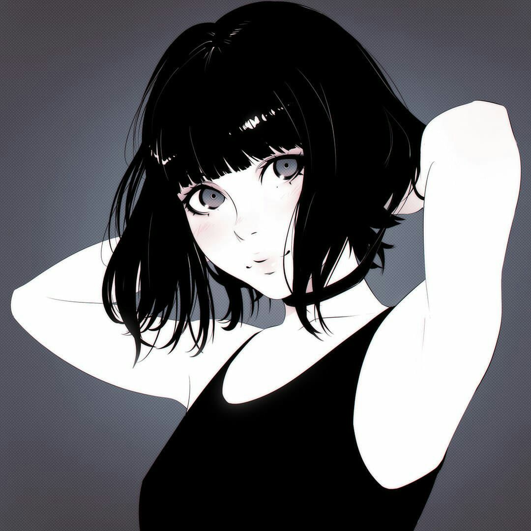 10 ảnh anime girl tóc ngắn đen, đồ đen.