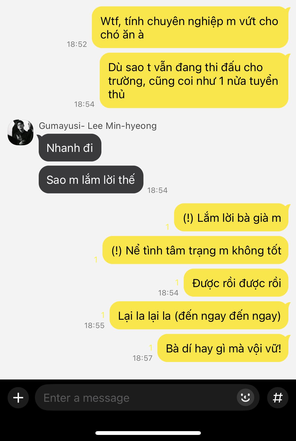 Lee Min-hyeong lắc đầu không nói, chỉ lặng lẽ đưa dòng tin nhắn...