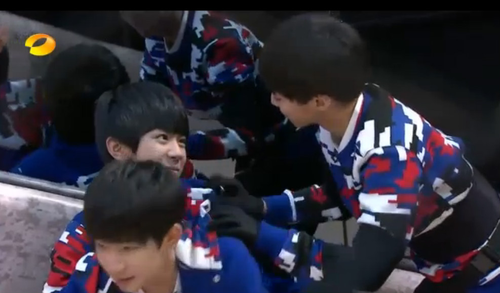 Vẫn là trong Crazy Magic, đại cưa nói phải đạp lên vai của hai người để nhảy qua, chú ý ánh mắt của Dương be be.