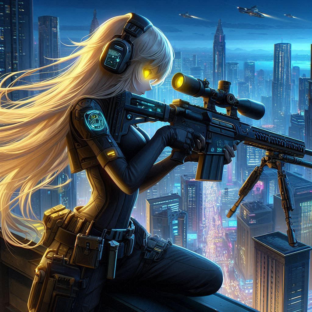 Kara lay flat against the cold metal of the rooftop, her sniper rifle perfectly balanced as she watched the entrance where Alix and her team would inevitably appear. She adjusted the windage with deft hands, calculating every factor for the perfect shot. The city skyline stretched before her, but her focus remained unwavering, her heart steadying as she inhaled slowly.