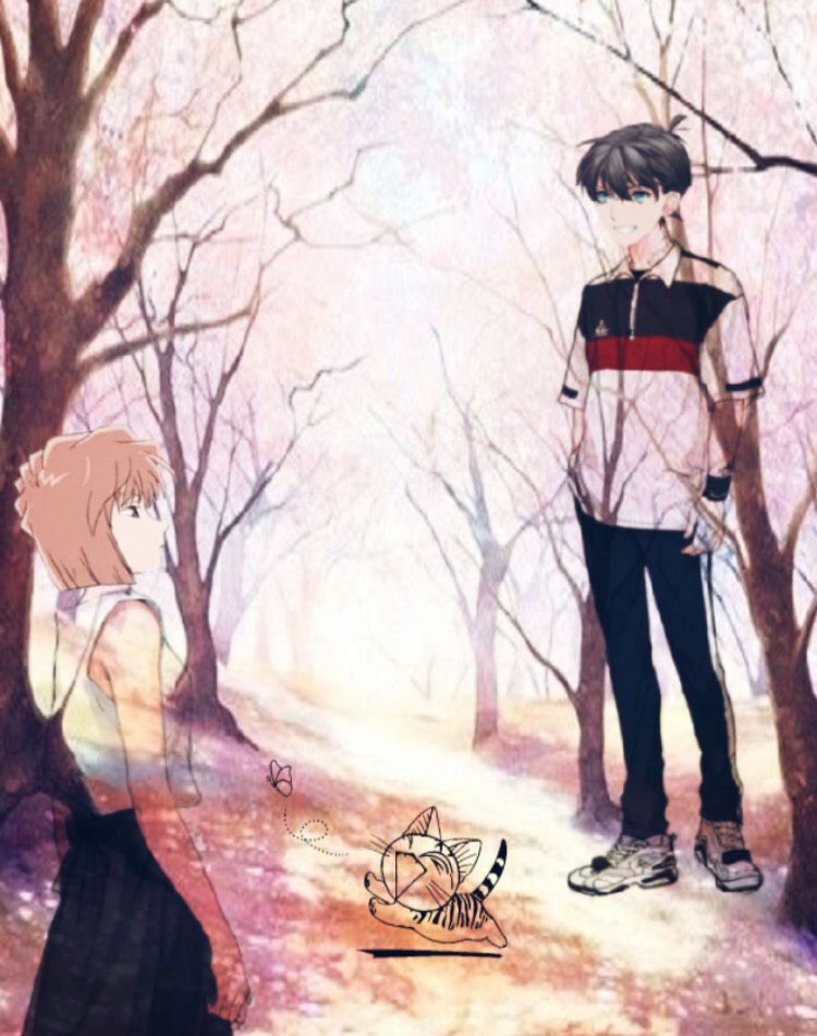 Chú mèo chạy đến 1 nơi rất đẹp , xung quanh toàn là cây hoa anh đào rực rỡ , khung cảnh đẹp và lãng mạng vô cùng .