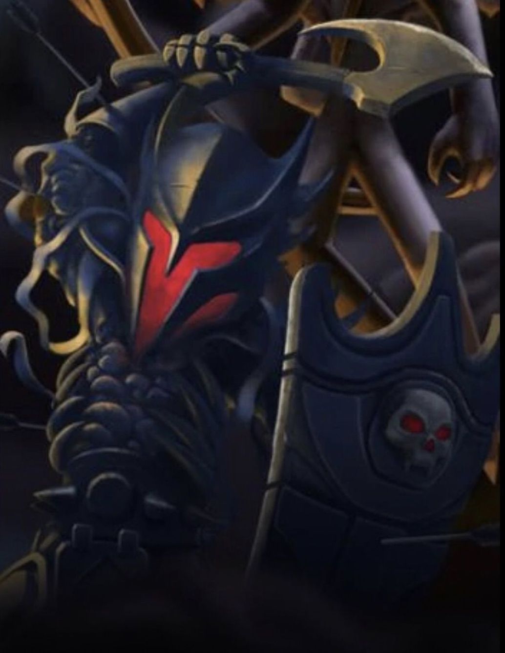 Skull Knight: Piercer's right hand man or demon so to speak. This demon fought alone against Piercer in a 1v1 hoping to join Piercer's empire. The Skull Knight did alright but not enough. Piercer defeated this knight and took a liking to him. Piercer taught the Skull Knight his fighting style "Spins of Torment" this fighting style involves those that carry a two handle weapon to spin it rapidly in front of them. They spin it to build up the momentum to increase the damage they'll deal to their targets and they spin to protect themselves from certain attacks this fighting style works really well with the "Fa Jin" quirk. The Skull Knight rides on his flaming horse. The horse itself is strong enough to help the Skull Knight charge through enemy lines like nothing and strong enough to knock any enemies away just by stomping it's hooves onto the ground hard. The Skull Knight carries a large two handle axe and also carries a long sharp flaming chain that they use to attack their targets from afar and deal some aerial damage. The Skull Knight is capable of healing himself, support any nearby allies with his "Enrage" spell making them fight much harder than before, and can summon a spiral of flames around him.