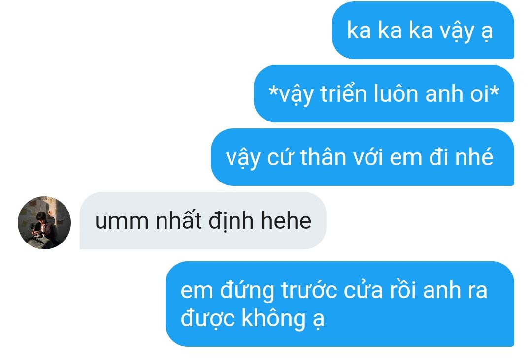 "Ây vô trong nhà rồi nói nhé, đứng ngoài cửa hoài em mỏi chân lắm"