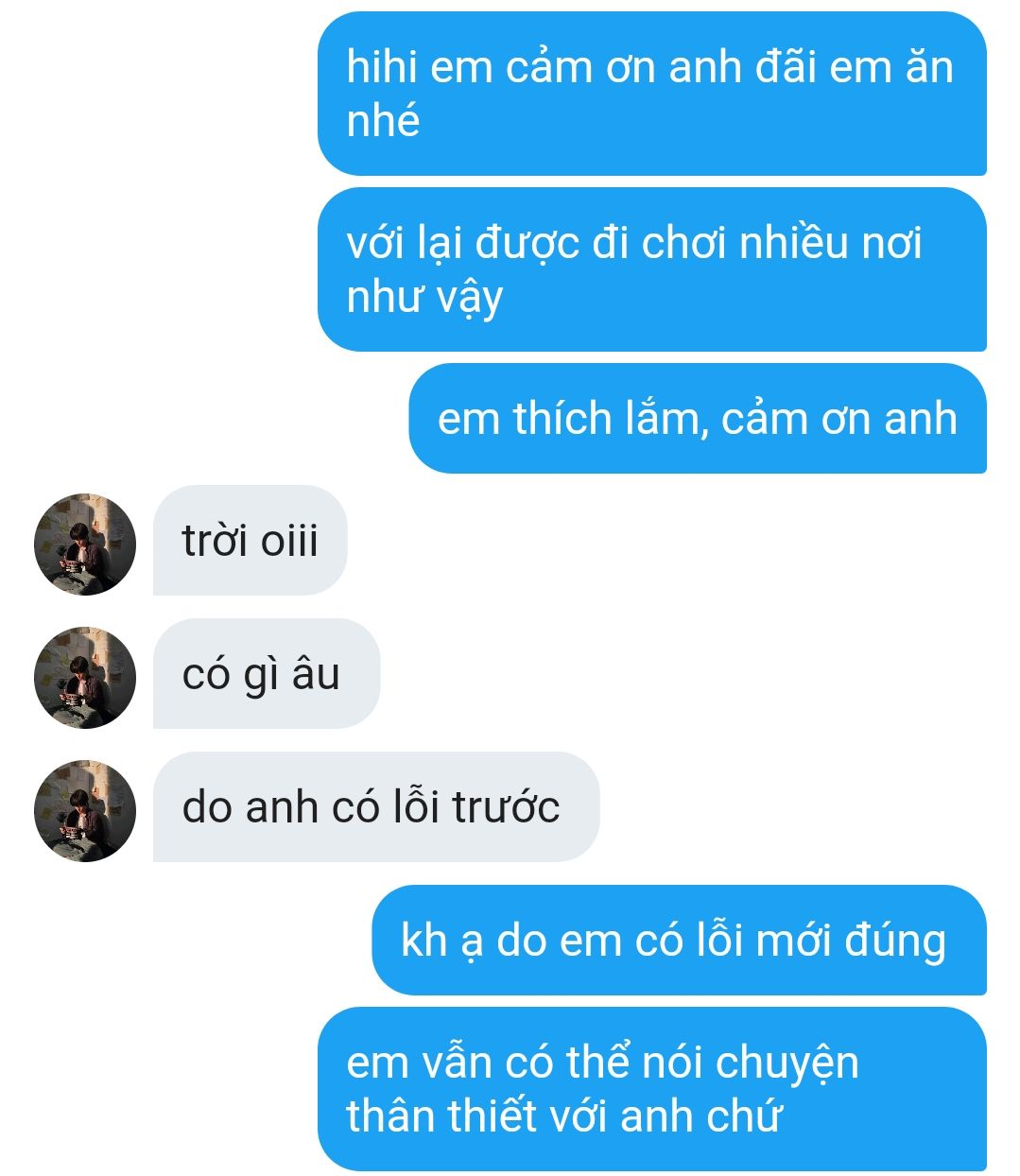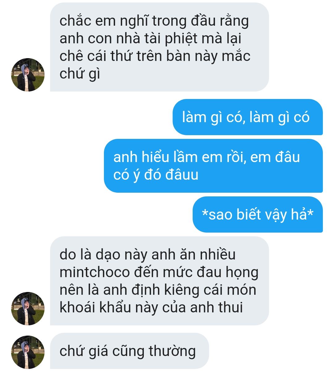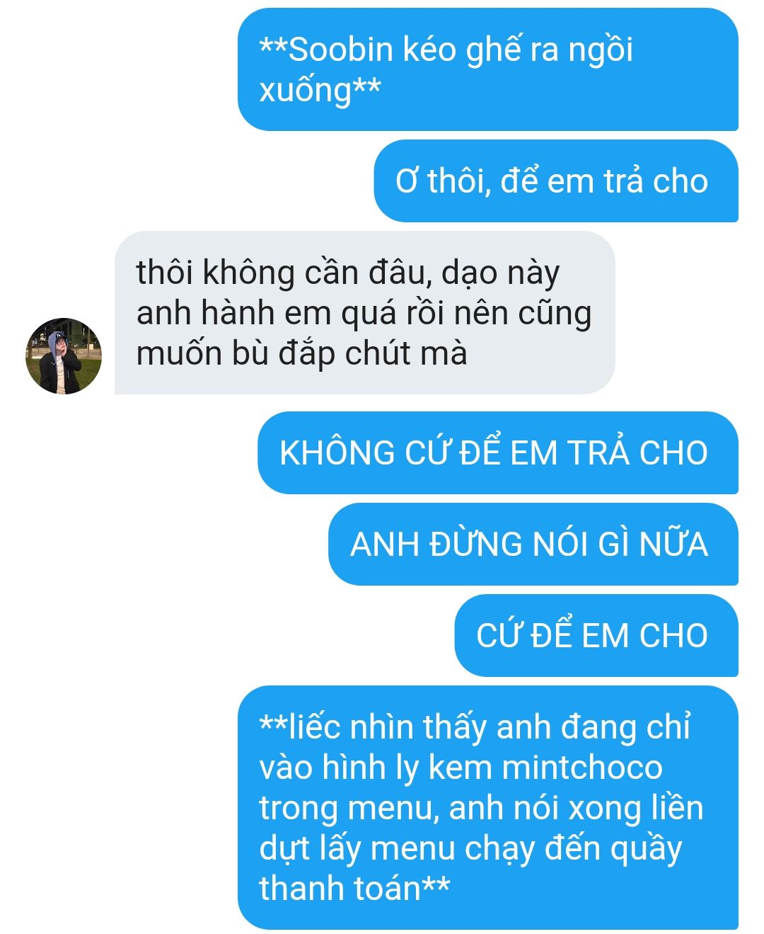 "Không sao em không thích trà sữa, ly này em mua cho anh đó anh cứ uống đi ạ"