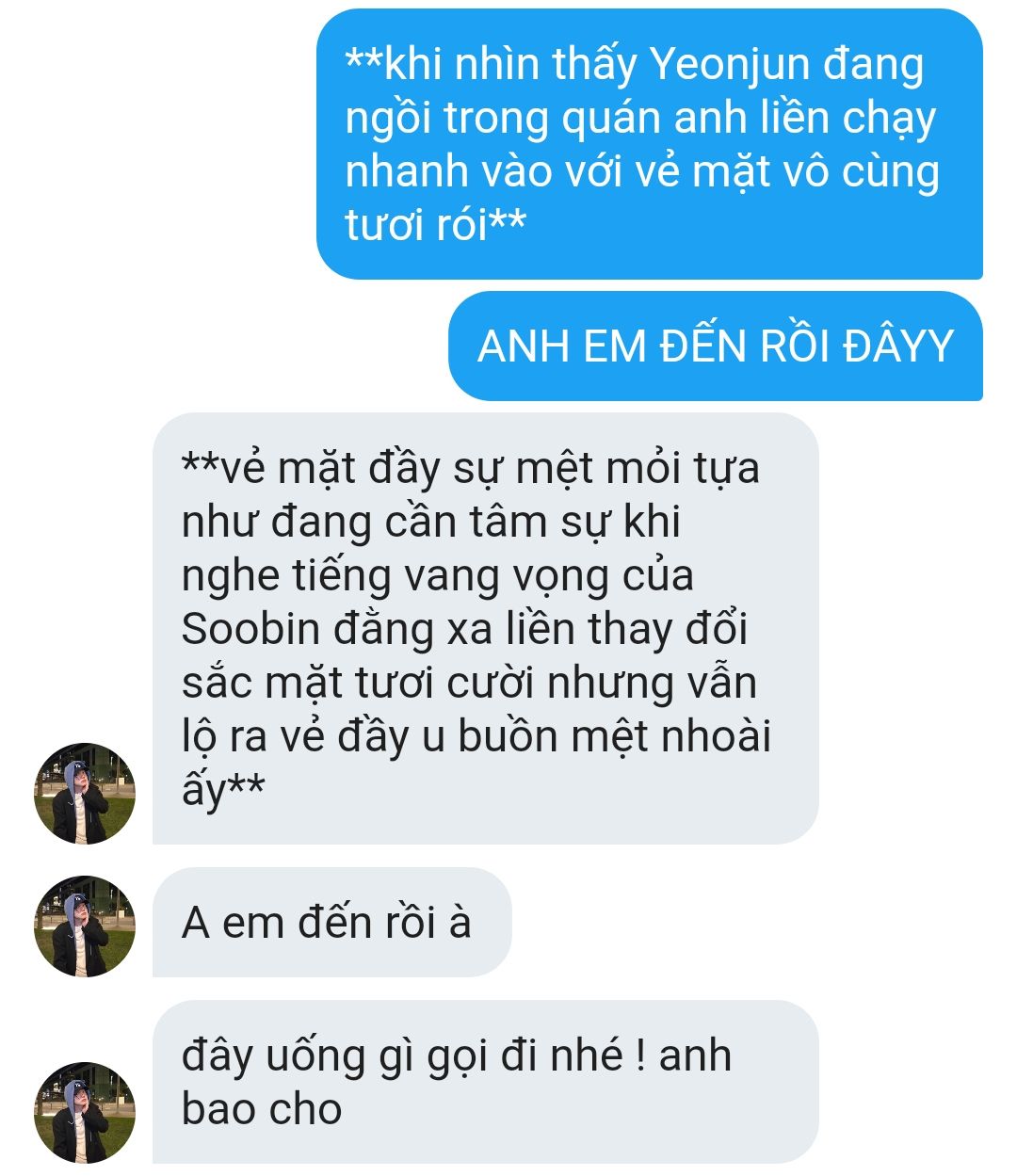 Beomgyu thấy tin nhắn liền chạy ra mở cửa "sao em lại ra đây?" anh ngạc nhiên hỏi.