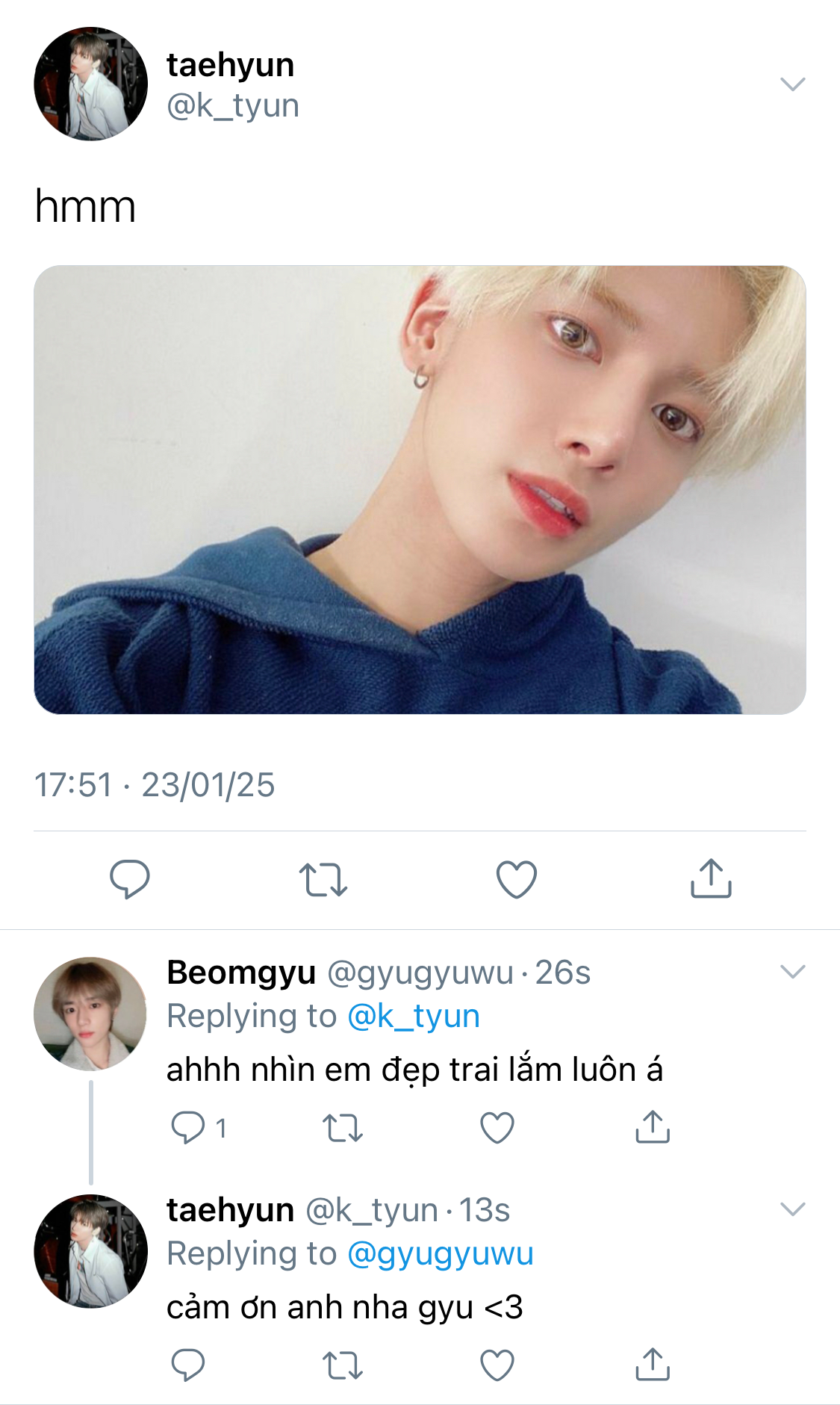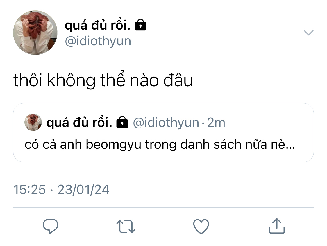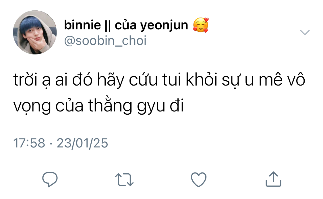 Beomgyu vẫy tay lại với cậu trong khi cố giấu đi vẻ thất vọng trên mặt. Anh tự bĩu môi với mình khi hồi tưởng lại cuộc tương tác ngắn ngũi của hai người họ trong đầu.