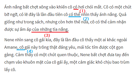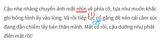 2. ...cô gái kia thì bắt gặp hình ảnh cô gái kia(x) đang rưng rưng... -> ...cô gái kia nhưng đột nhiên bắt gặp hình ảnh cô đang rưng rưng...
