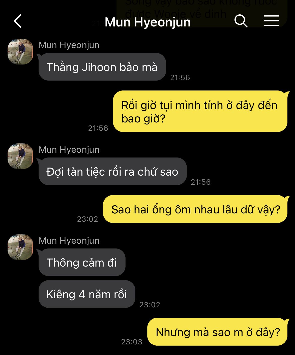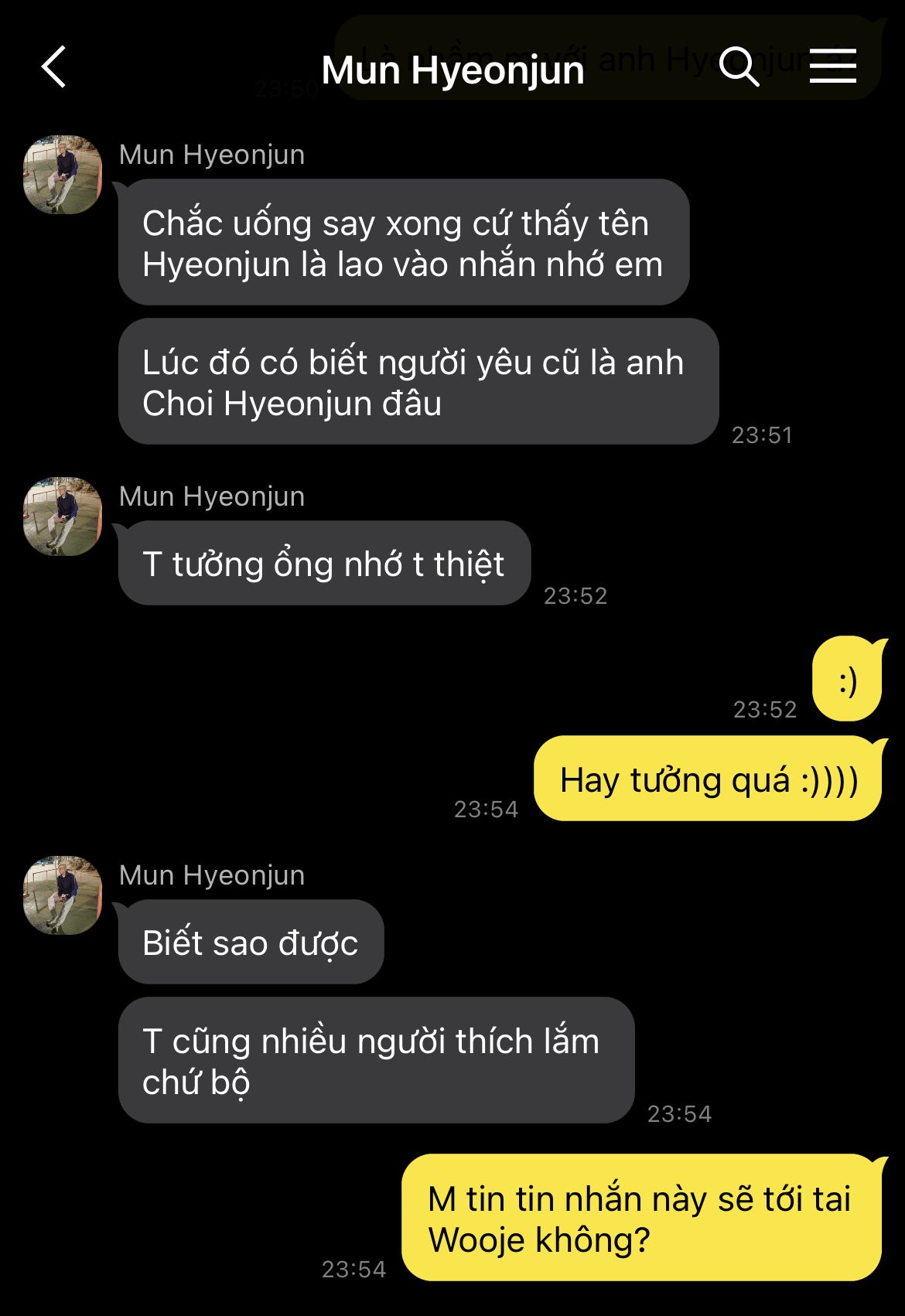 Hyeonjoon ngẩng mặt, đôi mắt ngấn nước nhưng giọng nói lại dần trầm xuống, nghiêm túc lạ thường: