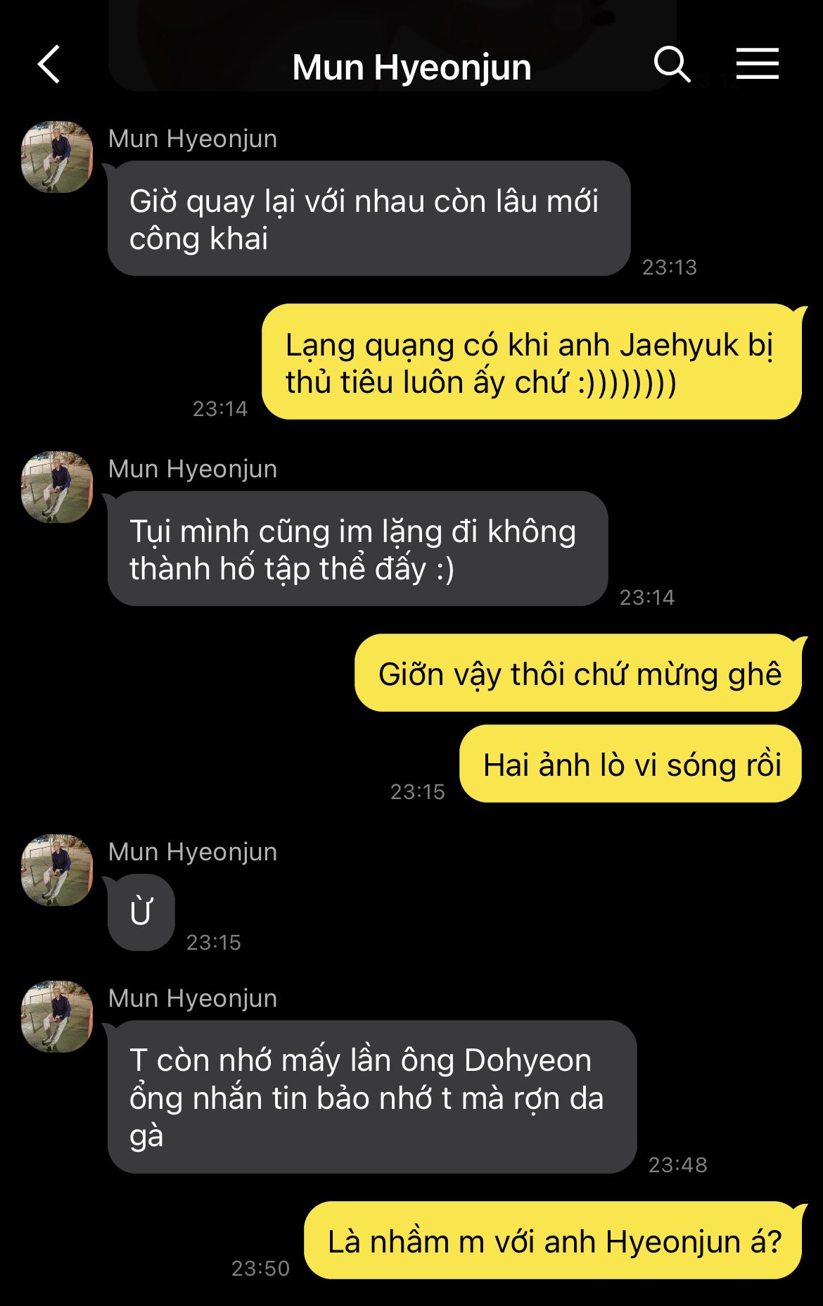 "Em chia tay Dohyeon với lý do có người thứ ba chỉ để anh ấy dứt khoát rời bỏ em đi du học. Bó hoa hôm đó, tất cả chỉ là dối trá. Tình yêu của tụi em... chưa từng có kẻ chen ngang. Em yêu Dohyeon hơn tất cả. Từ đầu đến cuối chỉ yêu mình anh ấy. Và đến tận bây giờ, em vẫn thế."