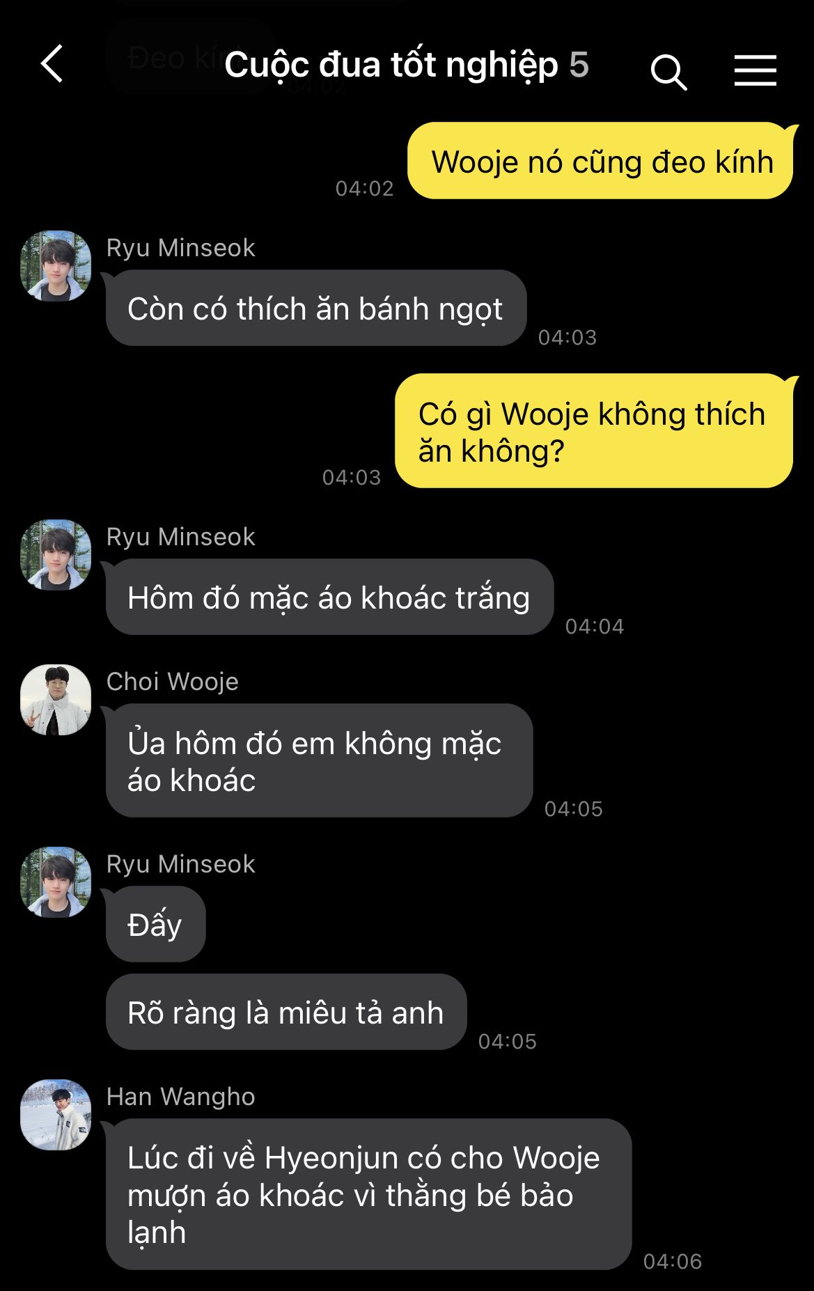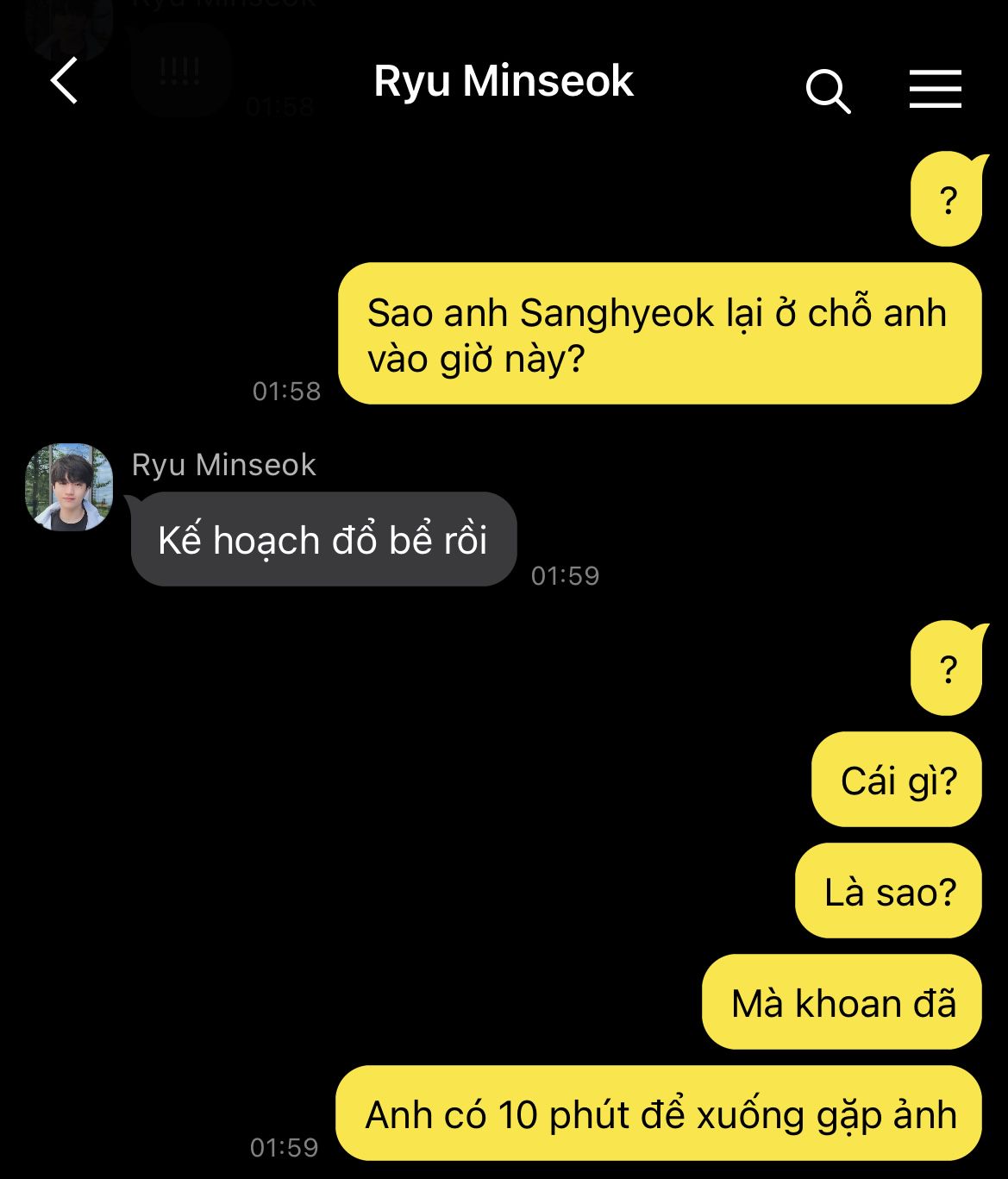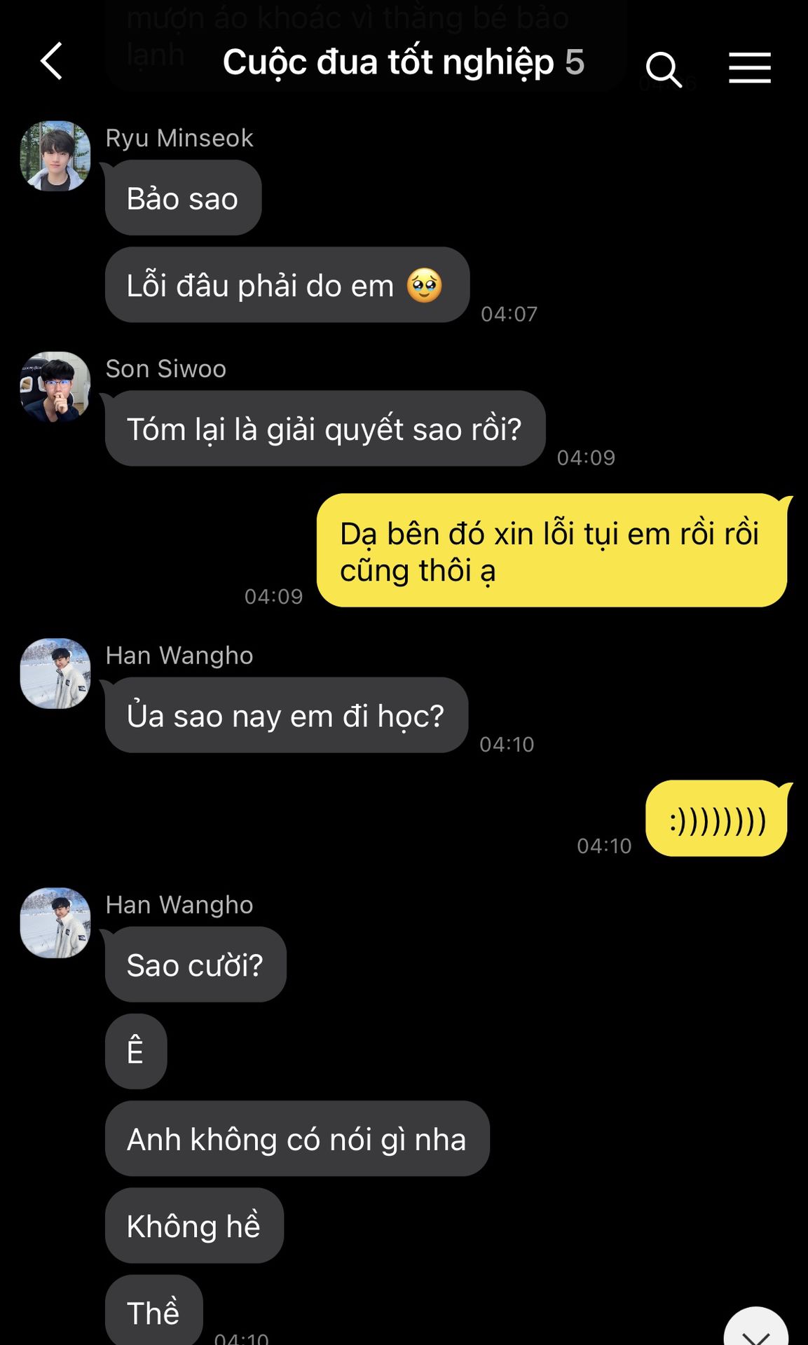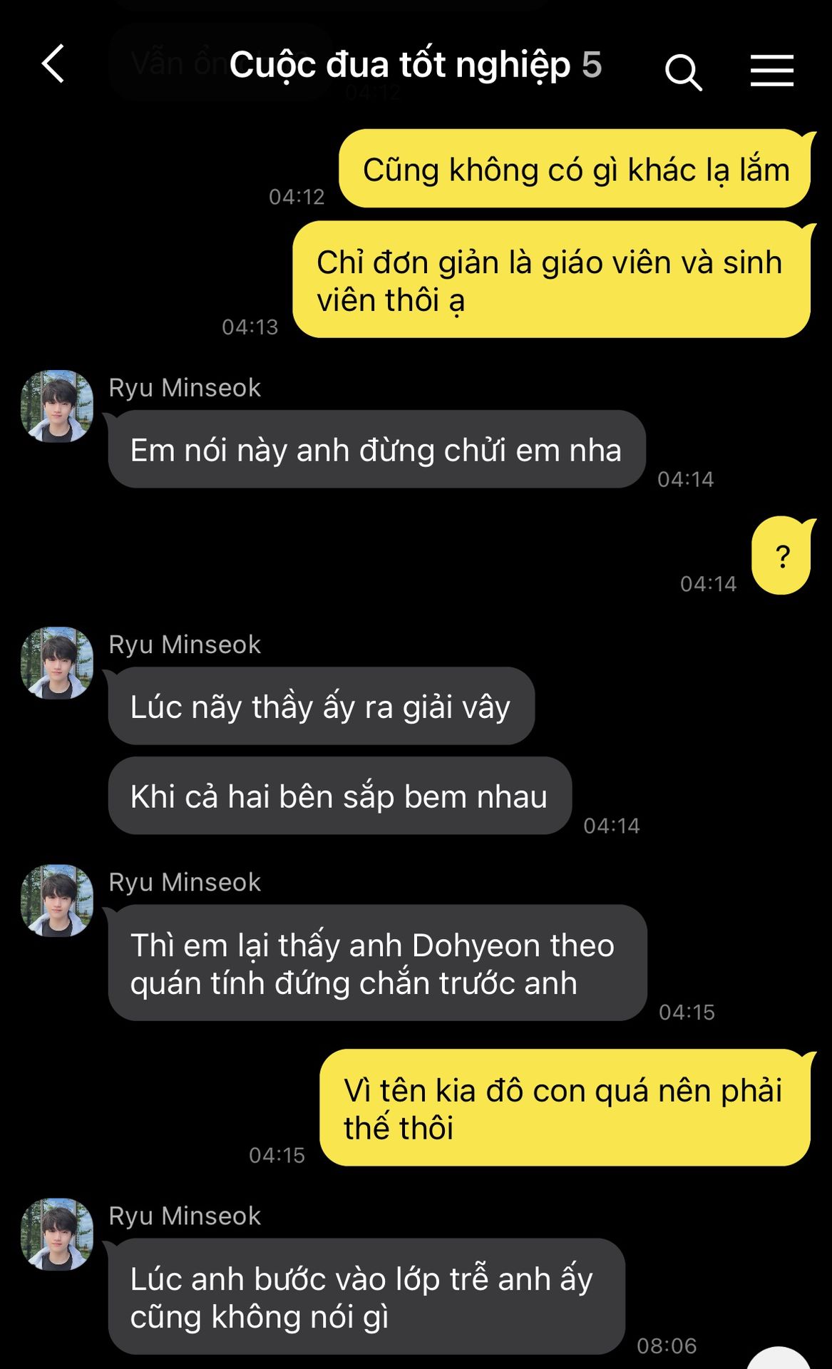Trái tim Hyeonjun hoảng loạn, nhịp đập dồn dập như muốn bật ra khỏi lồng ngực. Cậu cúi gằm mặt, vội vàng né tránh ánh nhìn ấy, như một kẻ trốn chạy khỏi quá khứ. Chẳng dám dừng lại dù chỉ một giây, cậu đảo mắt tìm kiếm bóng dáng hai đứa em trong biển người rồi nhanh chóng lách qua hàng ghế, len lỏi tiến về phía chỗ ngồi an toàn nhất có thể.