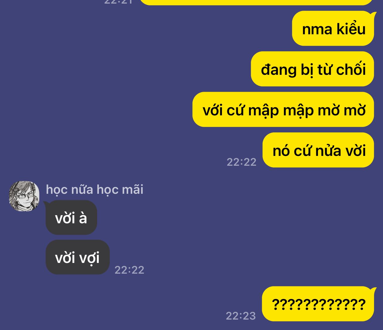 chán lms r nhanh nhanh end để làm fic típ. muốn kéo dài cho tno mập mờ nhưng ko thể tưởng tượng nổi th gougou trong mqh nửa mạc nửa mỡ nên rush lên v☹️ xong fic này chắc cũm lọ thêm mấy cn fic nx chứ k tắt thở thíu sức sống, đời thiếu gay hồn bay phân nửa