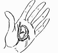 Right hand now draws away, bringing ball with it, still held between thumb and fingers. Left hand closes quickly at same moment. The effect is that you have PLACED THE BALL OF PAPER IN YOUR LEFT HAND.