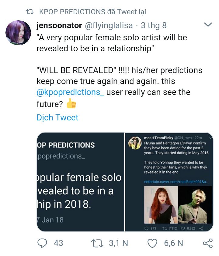 Những dự đoán của kpop predictions tiếp tục trở thành sự thật lần nữa. Có phải @kpoppredictions_ thật sự sẽ nhìn thấy được tương lai đúng không?