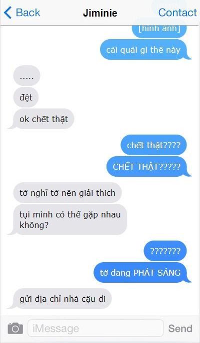"Không," Jimin hối hận, "Không, tớ không phải đâu."